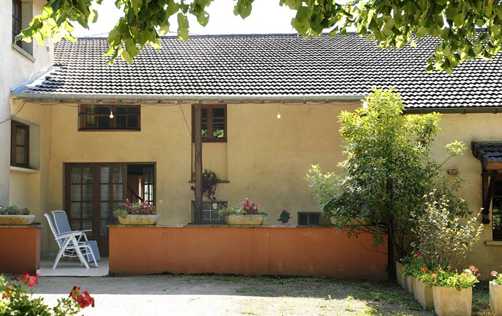 Jean-Louis & Patricia vous ouvrent les portes d'une authentique ferme bourguignonne de caractère du 19ème siècle restaurée avec soins, blottie au calme en bordure de ruelle & lisière d'un petit bois, sur un site insolite pétri d'histoire à l'endroit d'une ancienne carrière dont subsistent quelques imposants rochers. Niché sur les rives de la Saône (en accès direct par petit sentier pédestre & VTT) au creux d'un secteur classé en "Zone Natura 2000" pour son remarquable écosystème, non loin de la réserve naturelle de la Truchère, le paisible bourg typique de Lacrost fait face à Tournus, & ses belles façades colorées de caractère méditerranéen, lovée sur la rive opposée. Site abbatial roman de renommée mondiale, cette charmante cité commerçante, étape gastronomique réputée, dispose d'un patrimoine inestimable (abbaye St-Philibert des X et Xie siècles, Hôtel Dieu, églises romanes du XIIe, maisons gothiques, bâtiments du moyen-âge au XVIIIe, hôtels particuliers, vestiges romains…) et de l'intégralité des commerces, services et équipements de loisirs, au cœur d'un magnifique territoire préservé alternant plaines & vallons de bocages, forêts et vignobles. Gîte de bon confort. Ultra spacieux. Pièces aux dimensions nobles. Chaleureux cachet campagnard d'esprit néo-rustique allié à l'ambiance dépaysante d'une ancienne demeure. Large terrasse abritée et close (portillon) ouvrant sur une propriété fleurie, végétalisée et arborée (en commun avec propriétaires).