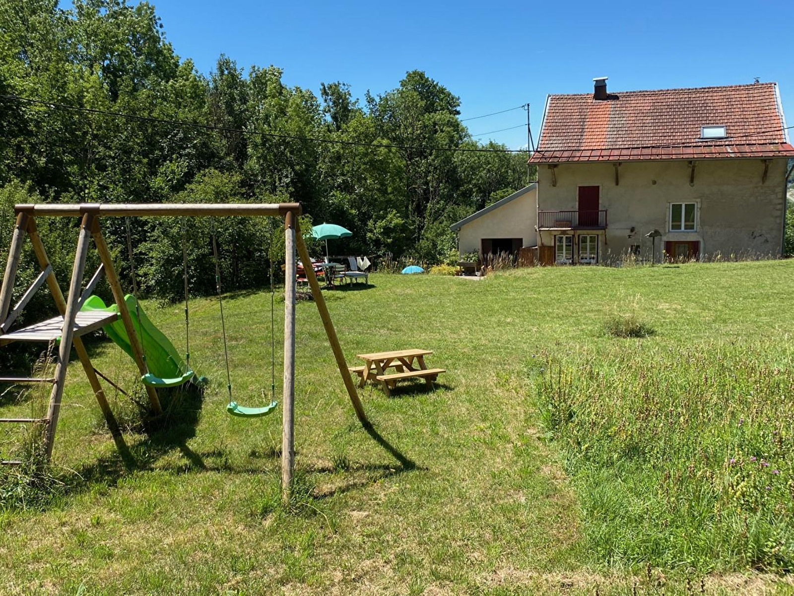 Belle maison Jurassienne de 1889 aménagée avec goût, indépendante et dominant la vallée. Elle est entourée d'un environnement naturel exceptionnel qui saura ravir petits et grands. Dans la maison, vous disposez d'un hall d'entrée, une cuisine équipée, une salle à manger, un espace salon avec cheminée et de nombreux jeux de société. Également une grande salle de bain (baignoire)et un WC indépendant. À l'étage, une vaste mezzanine avec babyfoot, bibliothèque, 2 chambres avec chacune 1 lit 2 places et une 3ème chambre avec 3 lits 1 place, une salle d'eau avec douche à l'italienne, double vasque, WC. Au 2ème étage, vous trouverez une 4ème chambre avec 3 lits 1 place et une 5ème chambre avec 1 lit 2 places et une salle d'eau avec wc. Pas de téléviseur dans le gîte, car les différents espaces de vie dans la maison et surtout l'environnement extérieur en pleine nature et sur un emplacement Gallo-romain, invitent à passer des moments remarquables en famille et entre amis. Vaste terrain boisé attenant non clos avec à votre disposition : salon de jardin, balançoire, toboggan et barbecue. De plus, le gîte est situé en bordure de l'Héria, avec baignades au creux des cascades (enfants sous la surveillance des parents). Internet avec bonne couverture 4G pour toute connexion sur son équipement et abonnement personnel. Tous commerces à 4 km.