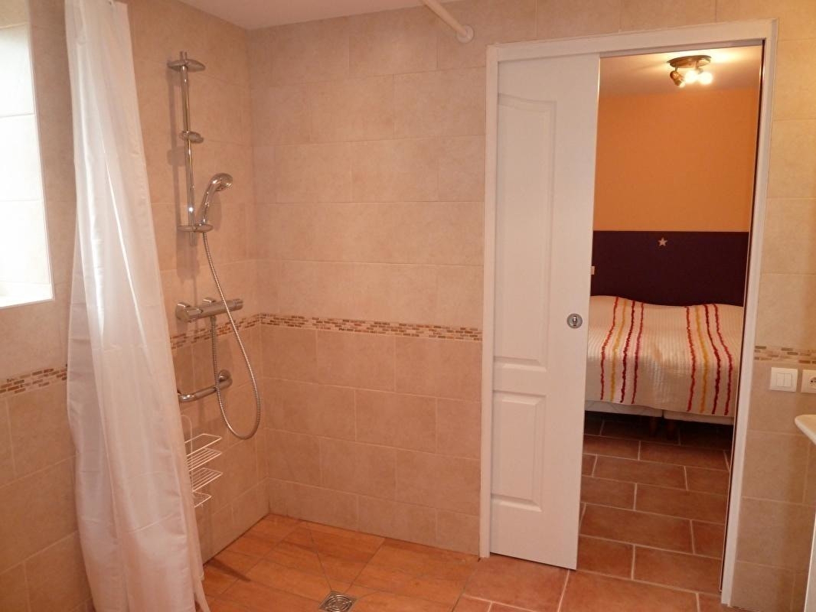 Composition : Maison de village mitoyenne jouxtant maison propriétaires (indépendance totale). Wifi. Chauffage central gaz. Rdc : séjour-cuisine-salon, 1 chambre PMR (2 lits 1 p. 90x190cm accolés), salle d'eau PMR (douche/Wc). 1er étage : 3 chambres (2 lits 1 p. 90x190cm accolés / 2 lits 1 p. 80x190cm accolés / 2 lits 1 p. 80x190cm accolés), salle de bain (baignoire), douche, Wc indépendant. Terrain clos (cour & jardinet) + terrasse + local vélos + parking privés. Commerces & services à 600m. Supermarché 1.5 km.