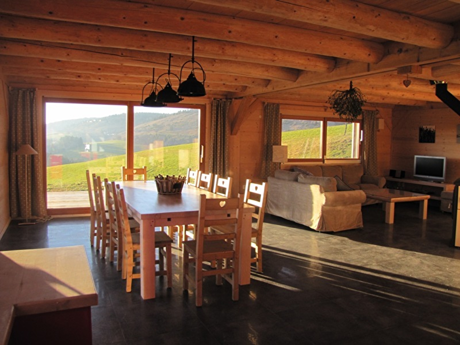 Au coeur du Haut Jura, sur les hauteurs du village, chalet indépendant offrant une belle vue sur la nature environnante. Au RDC garage pour 2 voitures avec porte électrique, buanderie, wc indépendants. Au 1er étage, grande pièce à vivre avec cuisine équipée ouverte sur le séjour, et salon, lecteur DVD, Salle d'eau, wc indépendants.. CH1: 1 lit 180X200cm. Au 2e étage: 2 chambres avec chacune 3 lits 1 pl, CH4 : 1 lit 180X200cm ou 2 lits de 90cm et lit bébé. Balcon. Salle d'eau, wc indépendants.. Grande terrasse, cour et terrain attenant non clos équipé de salon de jardin et barbecue. (Salle d'eau et wc à chaque étage). Espace détente avec sauna.