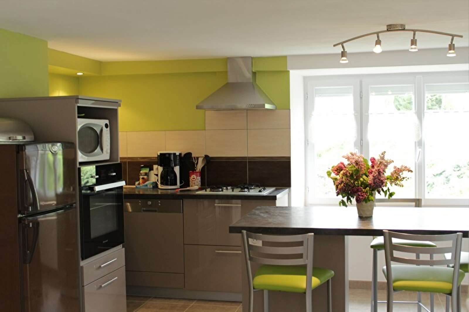 Au cœur du Jura, maison indépendante entièrement rénovée idéalement située entre vignoble et région des Lacs et à seulement quelques pas de Poligny, Capitale du Comté. Au rez-de-chaussée : cuisine indépendante toute équipée, salle à manger, coin salon avec TV écran plat , une chambre avec 1 lit 2 places en 160cm, salle d'eau avec douche à l'italienne, wc indépendants. A l'étage, la seconde chambre est composée de 2 lits 1 place et d'une salle d'eau avec une douche à l'italienne avec WC. Terrasse équipée de salon de jardin et barbecue, cour attenante non close. Lit et chaise bébé à disposition. (accessibilité PMR: pas de marche, une chambre au rez de chaussée et salle d'eau avec douche à l'italienne). Parking privatif sur place. Volets dans les chambres.