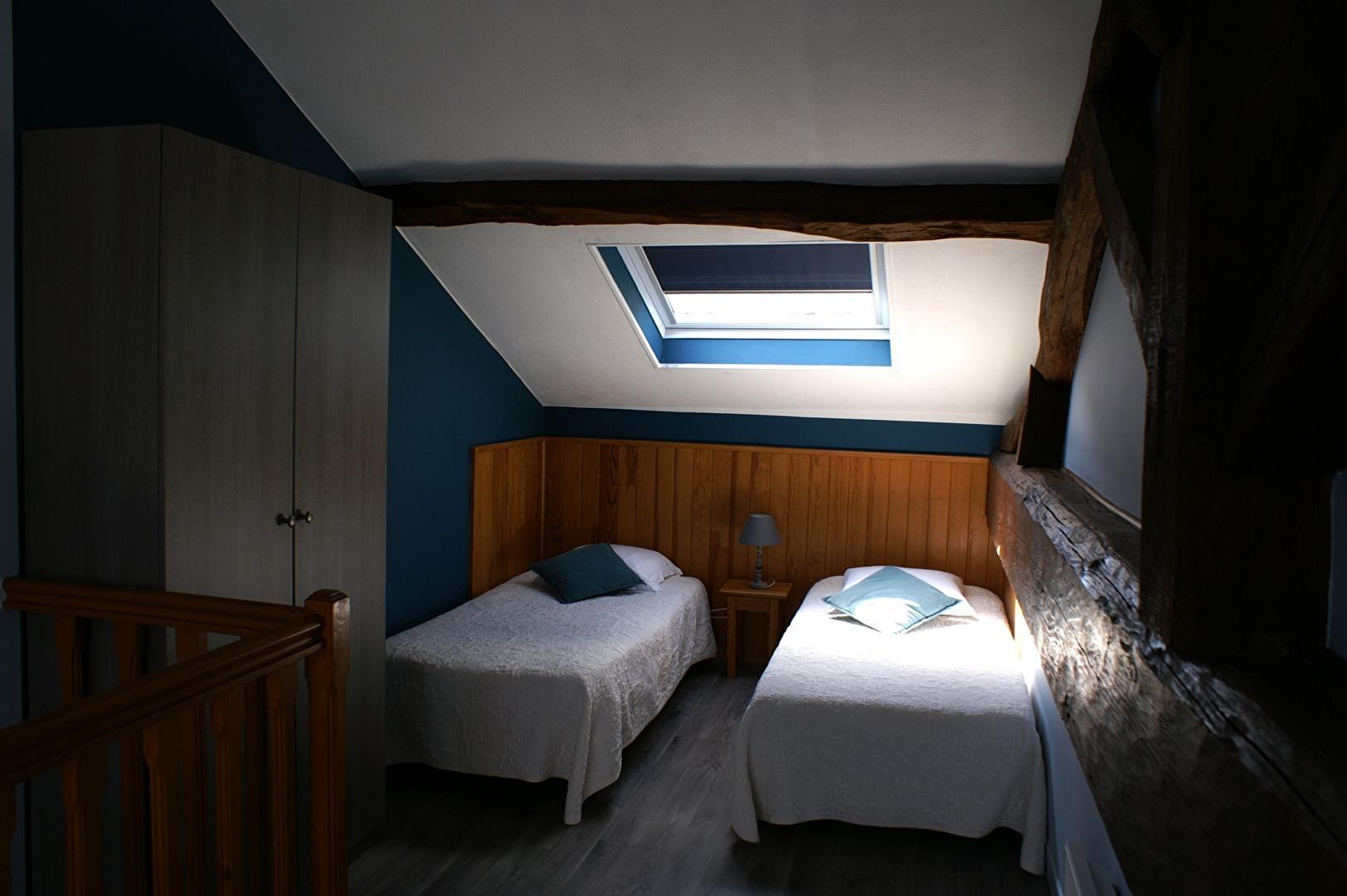 Composition : Gîte dans un bâtiment comprenant le logement et les chambres d'hôtes des propriétaires (indépendance totale en mitoyenneté). Wifi (fibre). Chauffage électrique. 1er étage : cuisine-séjour-salon, 1 chambre (lit 2 p. 140x190cm), salle d’eau (douche), Wc indépendant. 2ème étage : chambre en mezzanine (2 lits 1 p. 90x190cm). Balcon-terrasse + parking privés. Jardin clos (en commun avec les chambres d’hôtes) sur parc 1500m². Local vélos. Petits commerces sur place dont supérette. Supermarchés 10 km.