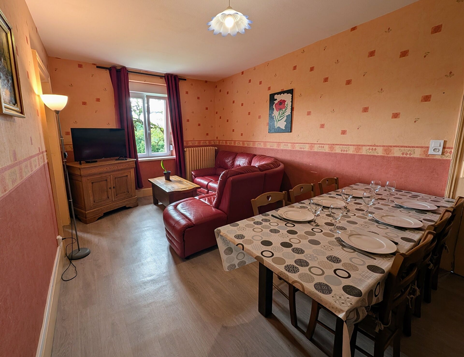 À 3 km du village, en pleine nature, appartement aménagé au 1er étage de l'ancienne école rénovée : cuisine, séjour/coin salon, 1 chambre (2 lits 1 personne), 2 chambres (1 lit 2 personnes), salle de bains, WC. À disposition : lave-linge commun avec le gite situé à l'étage. Terrain en pelouse non clos autour de la maison. Chauffage fuel. CHARGES COMPRISES. Comprend un autre gîte au rez-de-chaussée 70G4658 pour 6 pers.