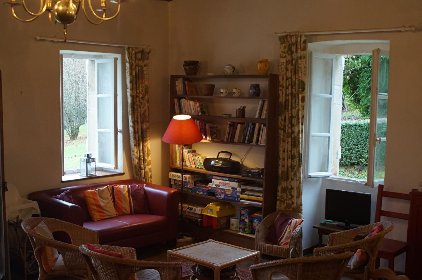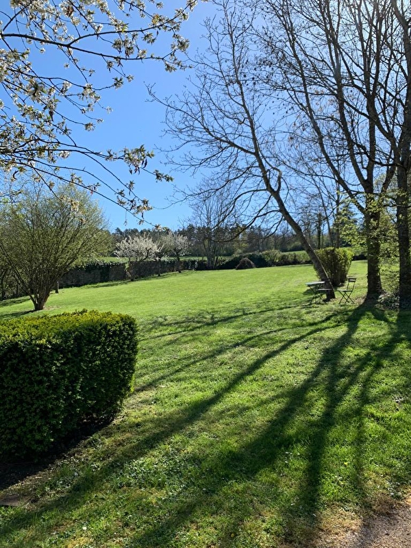 Composition : Maison individuelle jouxtant l'habitation des propriétaires (indépendance totale sans vis-à-vis). Wifi. Chauffage PAC. Cheminée (feu plaisir d'agrément). Climatisation. Rdc surélevé : séjour-salon, cuisine, 1 chambre (1 lit 2 p. 160x200cm), salle de bain (baignoire/WC). 1er étage : 3 chambres (3 lits 1 p. 90x190cm / 1 lit 1 p. 90x190cm / 2 lits 1 p. 80x200cm jumelables en lit 2 p. 160x200cm), salle d'eau (douche), WC indépendant. Jardin clos (2000m²) + terrasse + local vélo + parking privés. Commerces 1.5 km. Supermarché 2 km.
