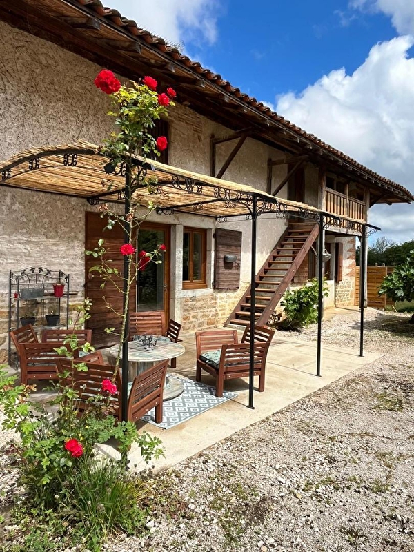 A la limite de l'Ain, du Jura et de la Saône et Loire, vous serez séduit par ce gîte de plain-pied rénové avec goût. Mitoyen à la maison des propriétaires, il se compose d'une pièce de vie avec coin salon équipé d'une TV, d'un lecteur de DVD, de 2 canapés convertibles (possibilité d'ajouter 1 ou 2 personnes supplémentaires sur demande), d'un poêle à bois, d'un espace salle à manger et d'une cuisine toute équipée, de 2 chambres : l'une avec 2 lits simples (90*190) et la seconde avec un lit double (160*200), d'une salle d'eau avec douche, d'un WC indépendant et d'une buanderie avec lave-linge. Pour votre plus grand confort, les lits seront faits à votre arrivée et les serviettes sont fournies. Côté extérieur, vous pourrez profiter d'une terrasse avec salon de jardin et barbecue, d'une piscine partagée avec les propriétaires et les vacanciers de la chambre d'hôte (dimension 9 * 4 avec fond allant de 1.20 à 1.80) ainsi que d'une table de ping-pong. Idéalement situé, à proximité du centre-ville de Saint-Amour où vous trouverez restaurants, commerces et transports en communs. Proche de l'autoroute A39, A40, A42. Randonnée pédestre et VTT. Vous pourrez visiter les caves des Vignerons de Beaufort et Rotalier mais aussi Château Chalon, Baume les Messieurs (ses cascades, ses grottes et son abbaye), le château d'Arlay, le lac de Vouglans, Arbois, Sagy et son petit parc animalier ludique (20 minutes), le village de Vercia illuminé au mois de décembre et la très pittoresque ville de Louhans (25 mn) réputée pour son patrimoine gastronomique et architecturale notamment du fait de son centre ancien et sa rue centrale bordée d'arcades. Vous pourrez déambuler dans le marché de Louhans qui se déroule tous les lundis matin. Vous pourrez également visiter la ville de Lons le saunier (20 mns) et vous prélasser dans ses eaux thermales. Site idéal pour les stages de méditation, yoga, sophrologie. Note : un forfait ménage obligatoire s’appliquera automatiquement au moment de la réservation.
