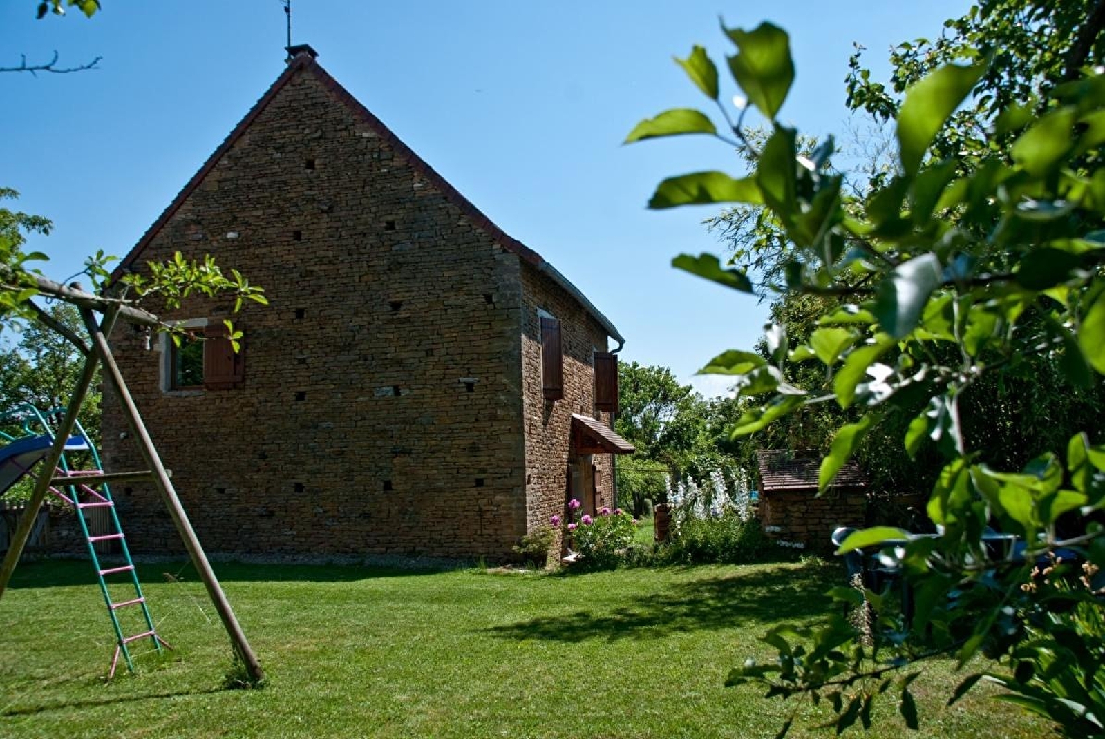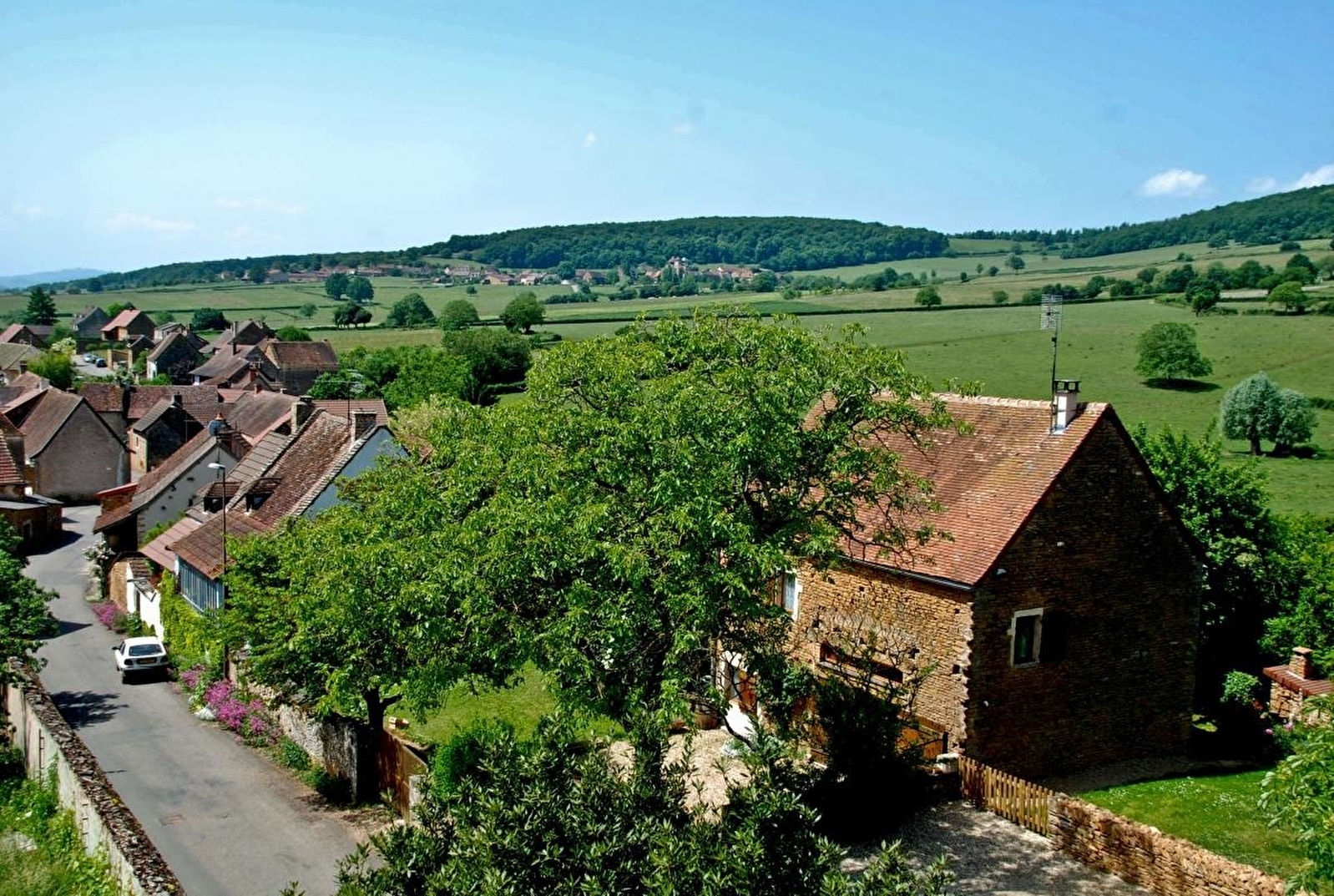 Passionnés de randonnée & vélo, Françoise et Christophe vous accueillent au sein d'un élégante grange traditionnelle de caractère du XVIIIe soigneusement restaurée, sise au calme au cœur d'un pittoresque petit village viticole de la campagne clunisoise. Totale tranquillité & ravissant cadre environnant, niché en lisière immédiate de prairies (avec les célèbres vaches charolaises comme voisines privilégiées en saison), sous les crêtes boisées des collines alentours, à deux pas des premières vignes. Pétri de charme & parfaitement préservé, ayant contribué à l'extraordinaire rayonnement de l'abbaye de Cluny, du Xe au XVIIIe siècle, Bonnay dispose d'un patrimoine unique (hameau médiéval classé avec château du XIVe, chapelle romane classée du XIe, historiques demeures seigneuriales & maisons rurales traditionnelles des XVIe et XVIIe, vestiges d'une des toutes premières églises fortifiées de Bourgogne datant du XIe…) et profite d'un magnifique écrin champêtre & naturel vallonné, entre bocage & vignobles, blotti au creux de la verdoyante vallée de la Guye au pied de plusieurs espaces forestiers sauvages. Splendide cadre paysagé. Gîte de très bon confort. Très spacieux. Vaste salle de jeux au beau volume, lovée sous les toits. Grande pièce de vie. Chaleureux cachet campagnard. Ambiance douillette. Agréable jardin clos engazonné (avec balançoire & toboggan) cerclé de murs en pierres sèches. Espace terrasse ombragé niché sous un érable offrant une belle vue dégagée sur la campagne environnante.