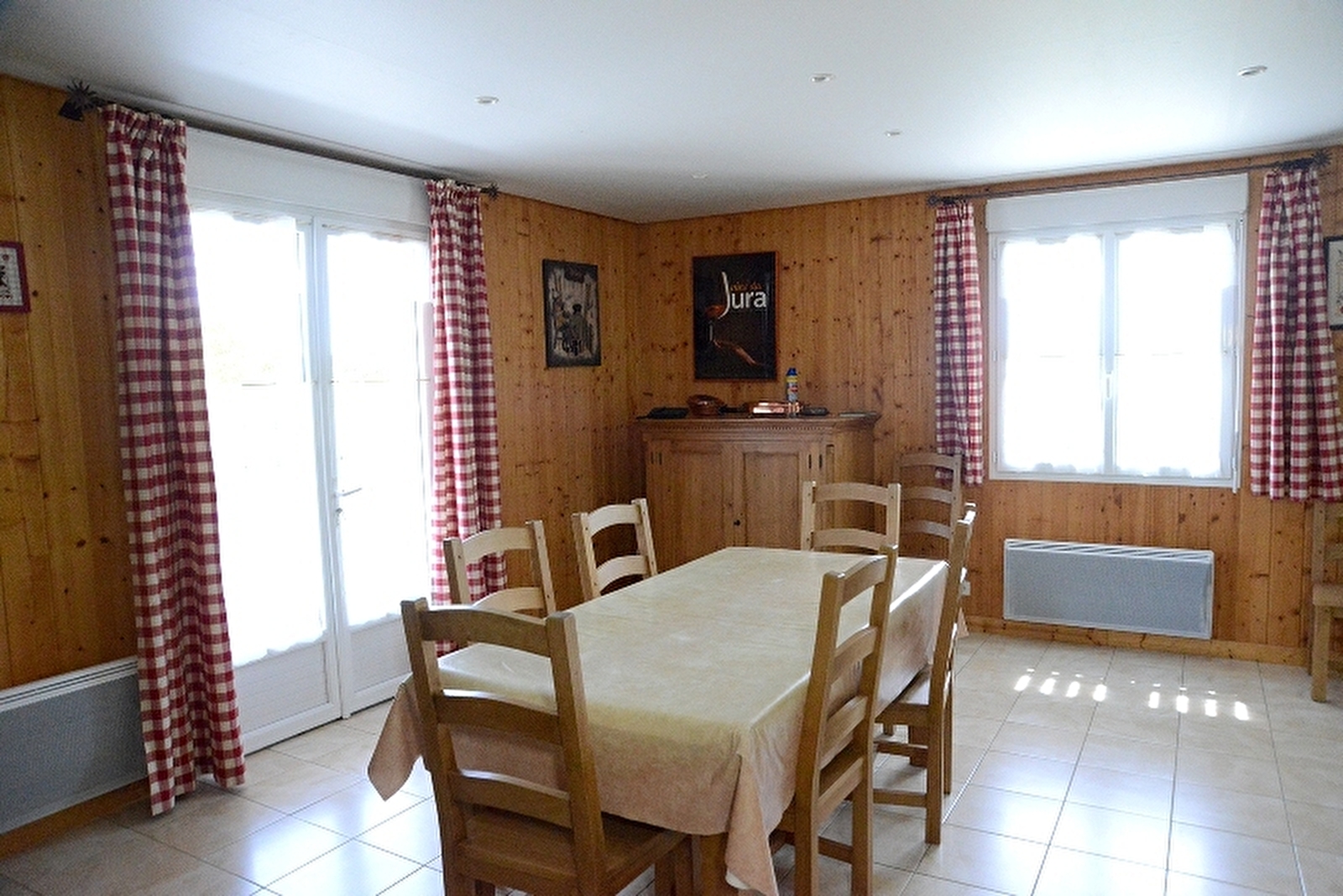 Au coeur de la nature, maison indépendante de plain pied. Grand séjour avec coin cuisine intégré, congélateur, salle d'eau, ch1: 1 lit 2 pl, à l'étage: mezzanine: grand salon avec 2 canapés et accès sur un balcon, salle d'eau, ch2: 1 lit 2 pl, ch3: 2 lits 1 pl. Chauff électrique, buanderie. Terrasse, salon de jardin, barbecue, terrain de pétanque, terrain non clos. Lac de Vouglans à 10 mn, magnifique vue panoramique, calme. Piscine de 5 X 12 M au sol avec barrière de sécurité (ouverte de 11h à 20h), commune à 3 gîtes et chauffée par aérothermie à partir de mi-mai début juin en fonction de la météo. ménage: 80€. Animaux non accepté.