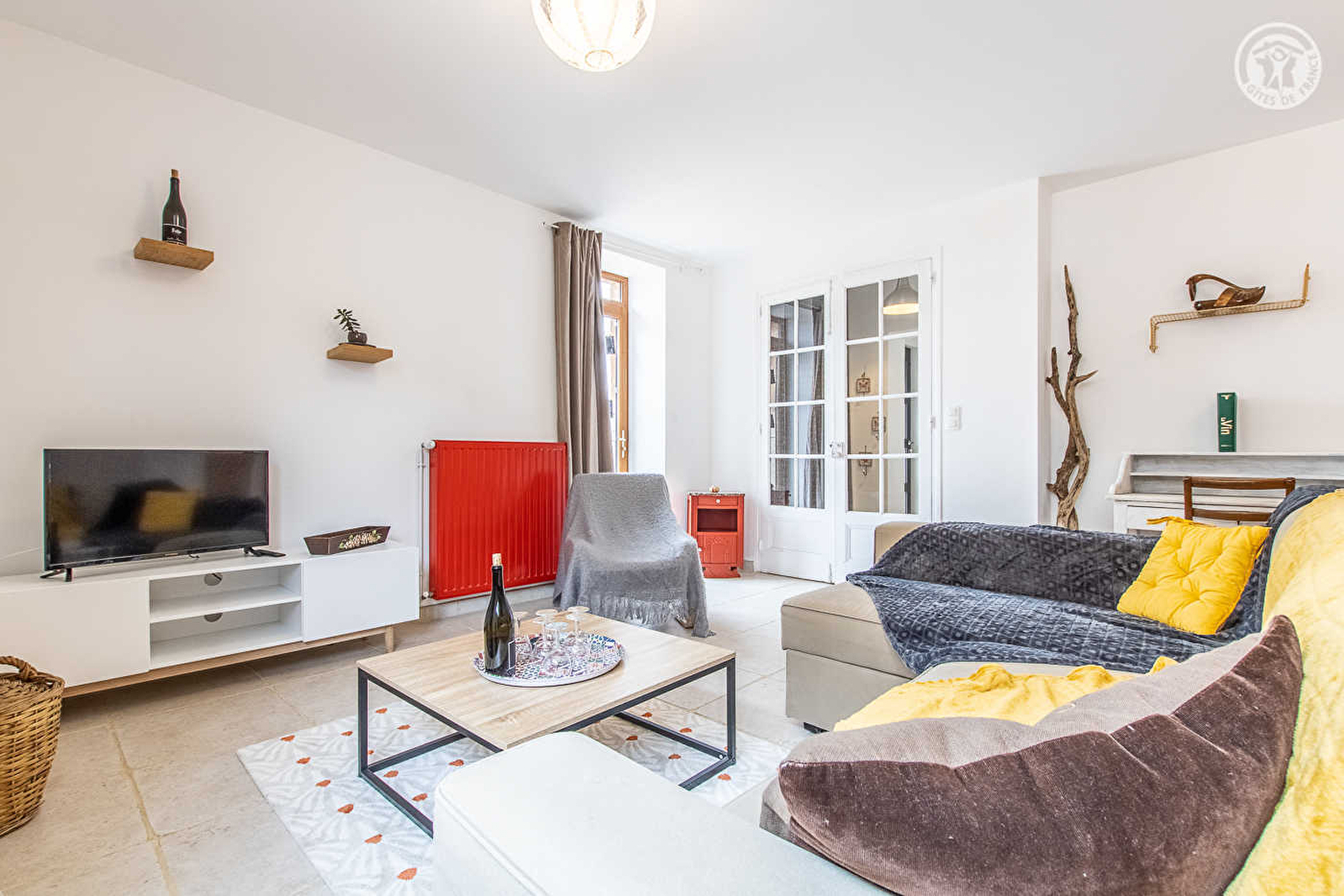 Composition : Maison individuelle jouxtant le cuvage du propriétaire. Wifi. Chauffage central gaz. Rdc : salon (convertible 2 p. 140x190cm en appoint), salle d'eau (douche/Wc). Rdc surélevé (demi niveau) : séjour-cuisine (avec espace véranda), sdb (baignoire), Wc indépendant. 1er ét. : 3 chambres (lit 2 p. 140x190cm / 2 lits 1 p. 90x190cm / lit 2 p. 140x190cm). Jardin clos (600m²) + terrasse + parking privé. Toutes commodités 8 km. Gare 4.5 km.