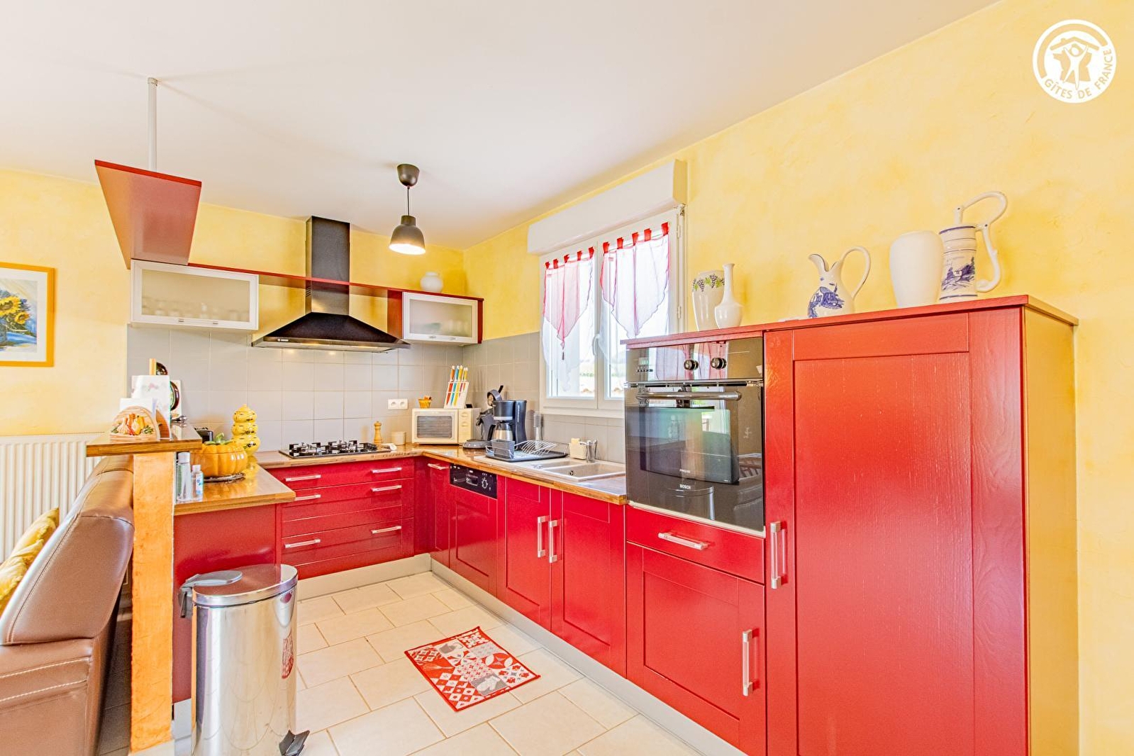 Composition : Maison individuelle sur 2 niveaux. Wifi. Chauffage PAC. Rdc : séjour-cuisine-salon, 1 chambre (lit 2 p. 140x190cm), salle d'eau (douche/Wc), buanderie. 1er étage : 2 chambres (lit 2 p. 140x190cm / 2 lits 1 p. 90x190cm), salle d'eau (douche/Wc). Parking + cour + jardin (800m²) + terrasse couverte + terrasse sur cour + local vélos + garage 1 place (dans dépendance) privatifs. Supermarché 2 km. Toutes commodités 5 km.