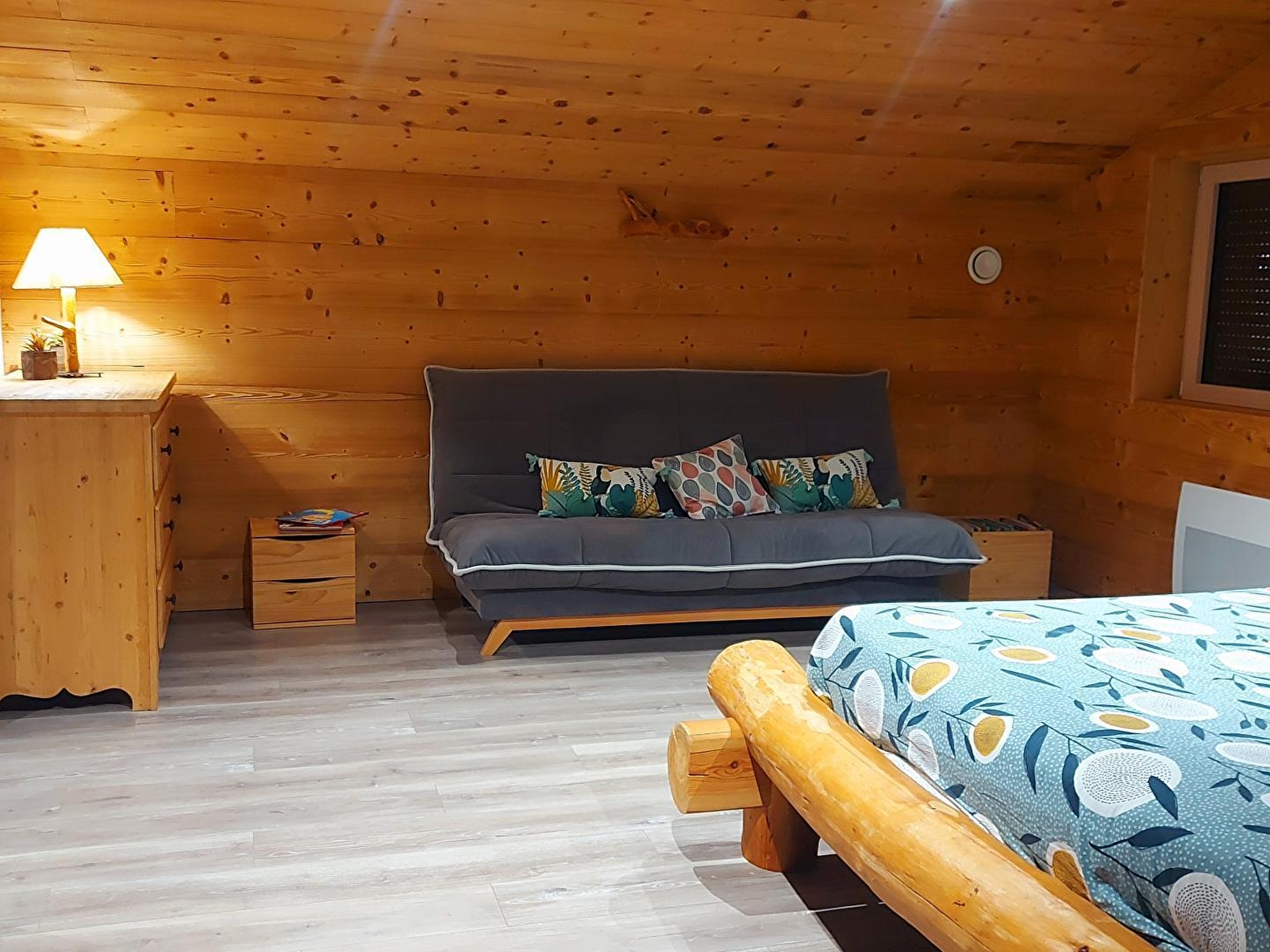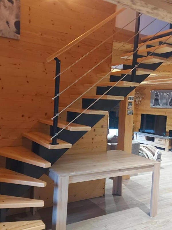 Situé dans le Haut Jura et à quelques encablures du lac de Coiselet, ce chalet entièrement neuf saura vous séduire par sa décoration cosy et épurée. C'est l'endroit idéal pour passer d'agréables moments entre amis ou en famille. Au rez-de-chaussée, grande pièce à vivre avec cuisine équipée, et séjour avec poêle à granulés, canapés et TV écran plat. Une chambre parentale avec 1 lit en 160 et salle d'eau avec douche à l'italienne, buanderie avec machine à laver et WC indépendant. A l'étage, une chambre avec 2 lits en 160 et une autre chambre avec 2 lits simples et 1 lit en 160, salle d'eau avec douche à l'italienne et WC. Côté extérieur, vous pourrez profiterez d'une belle terrasse avec salon de jardin et barbecue. Note : climatisation uniquement dans la pièce de jour