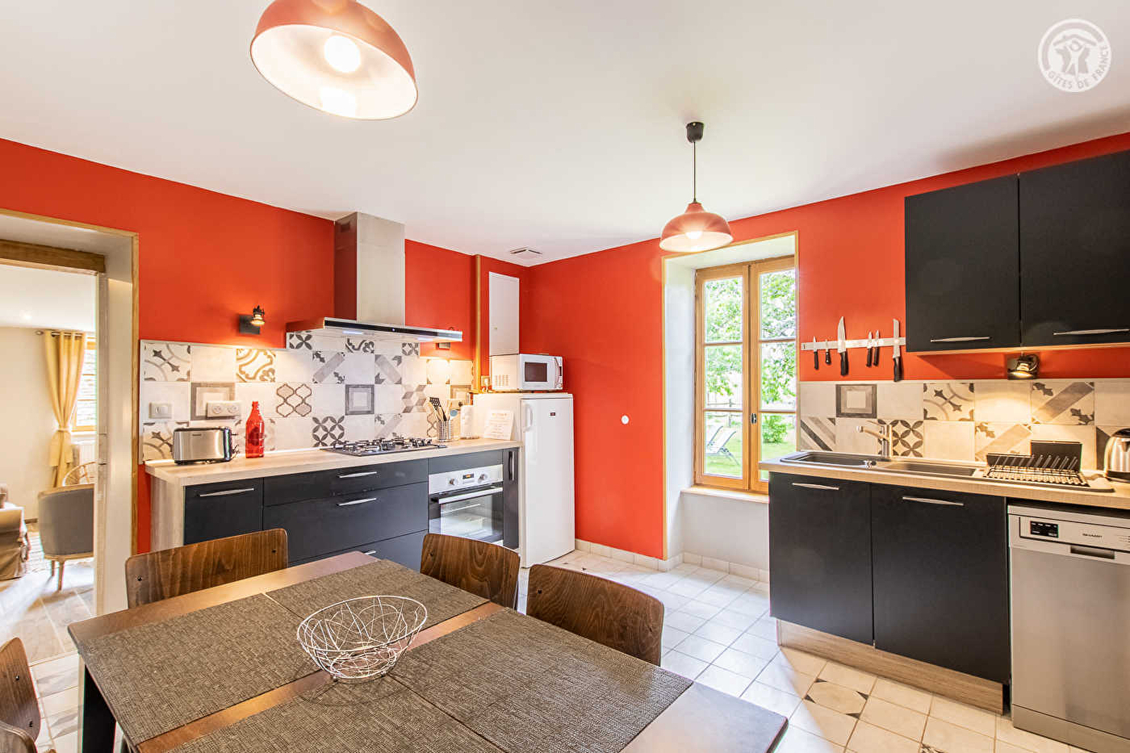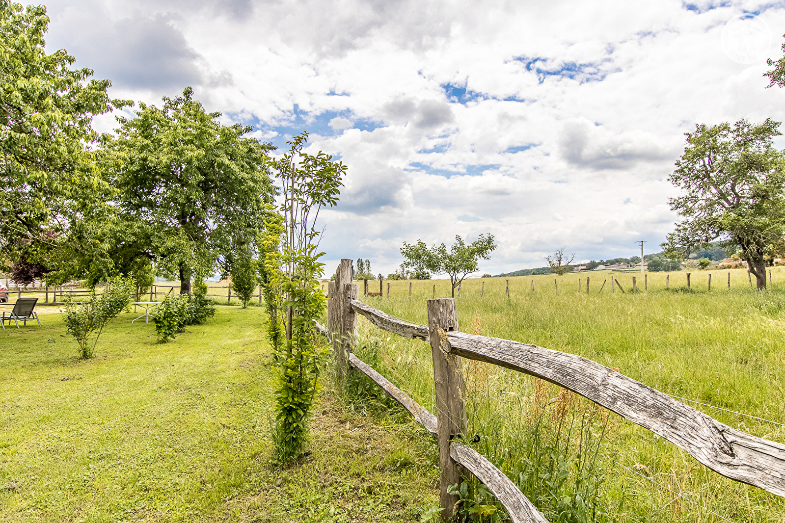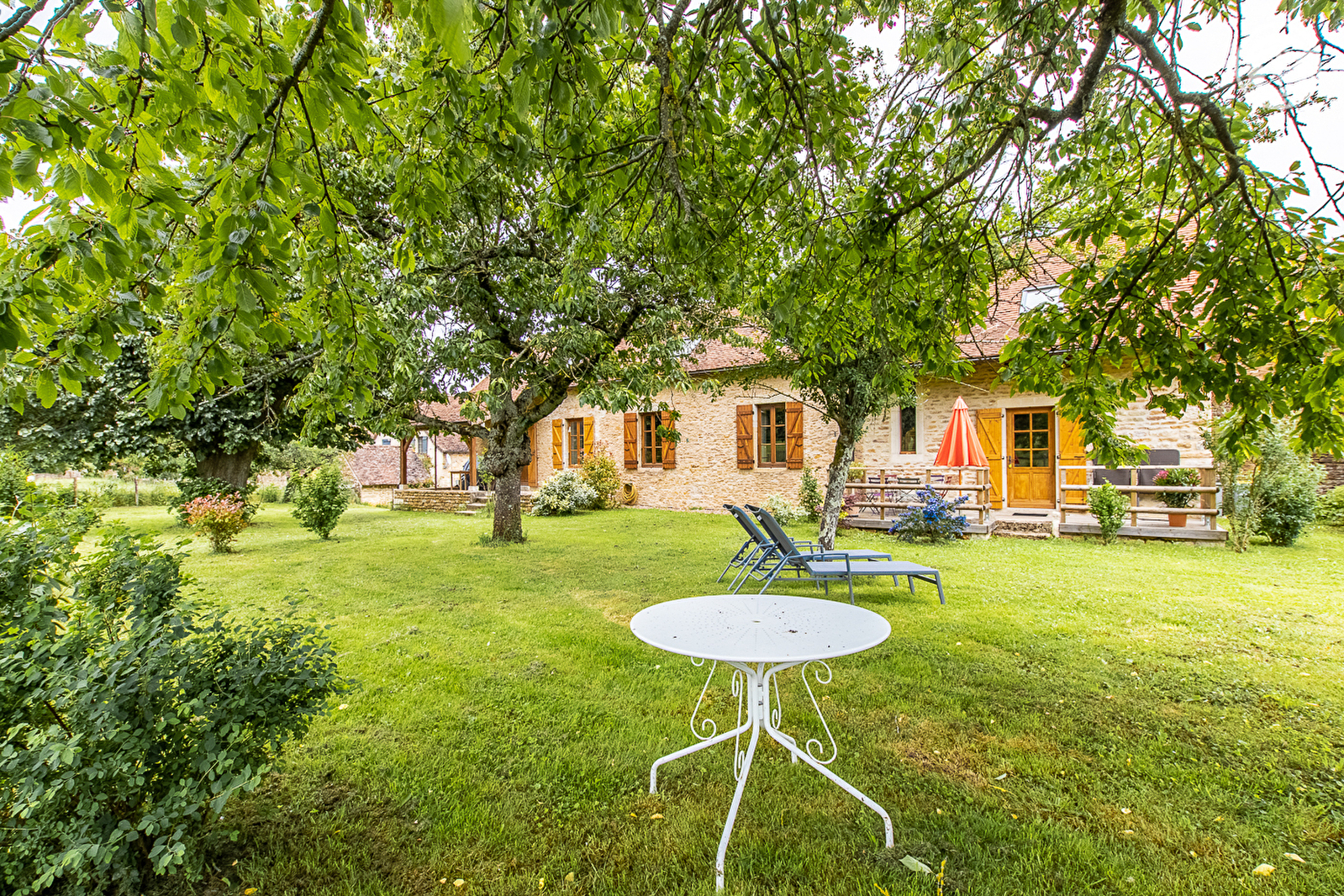 Élégante authentique ferme bourguignonne de caractère de 1780 chargée d'histoire (une des plus anciennes du village, maison de famille depuis plusieurs générations) soigneusement restaurée en confortable villégiature, blottie au calme en lisière immédiate de prairie où paissent de paisibles vaches charolaises en saison. Agréable environnement rural préservé en pleine campagne clunisoise romane, lové au creux de la bucolique vallée de la Guye (& sa rivière poissonneuse), sublime écrin vallonnée de nature & verdure, alternant coteaux de vignobles, vaste bocage, forêt et cours d'eau. Au cœur du pittoresque petit village de Bonnay, charmant bourg typique ayant contribué à l'extraordinaire rayonnement de l'abbaye de Cluny, du Xe au XVIIIe siècle, riche de magnifiques paysages et d'un patrimoine absolument unique (hameau médiéval classé avec château du XIVe siècle, chapelle romane classée du XIe, historiques demeures seigneuriales & maisons rurales traditionnelles des XVIe et XVIIe / château du XVe / vestiges d'une des toutes premières églises fortifiées de Bourgogne datant du XIe / croix du XIIIe classée MH…). Cadre & site ultra reposant. Spacieux gîte de très bon confort. Chaleureux cachet campagnard aux accents contemporains mixant ambiance "campagne chic" et touches industrielles. Beaucoup de charme, style et caractère. Cosy & cocooning. Equipement complet de qualité. Large terrasse exposée et ombragée ouverte sur un agréable jardin soigné & arboré de 700m² (cerisiers, pêcher…), aire de jeux privilégiée pour les enfants, disposant d'un intimiste espace détente-repas niché sous les arbres.