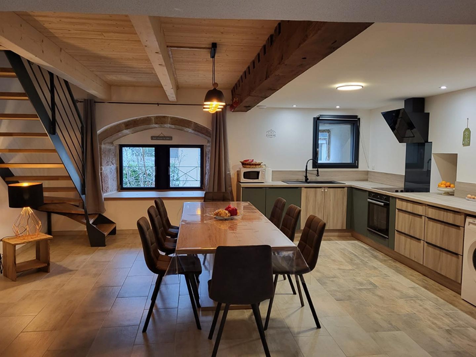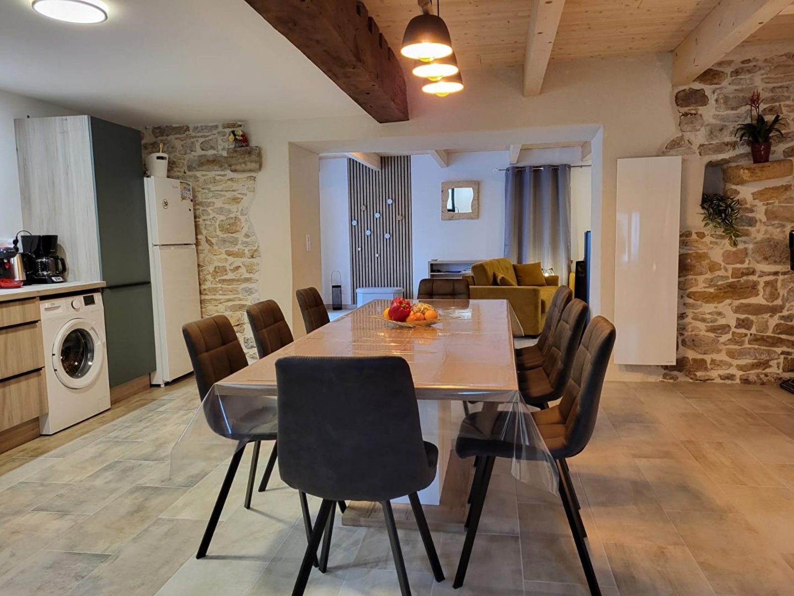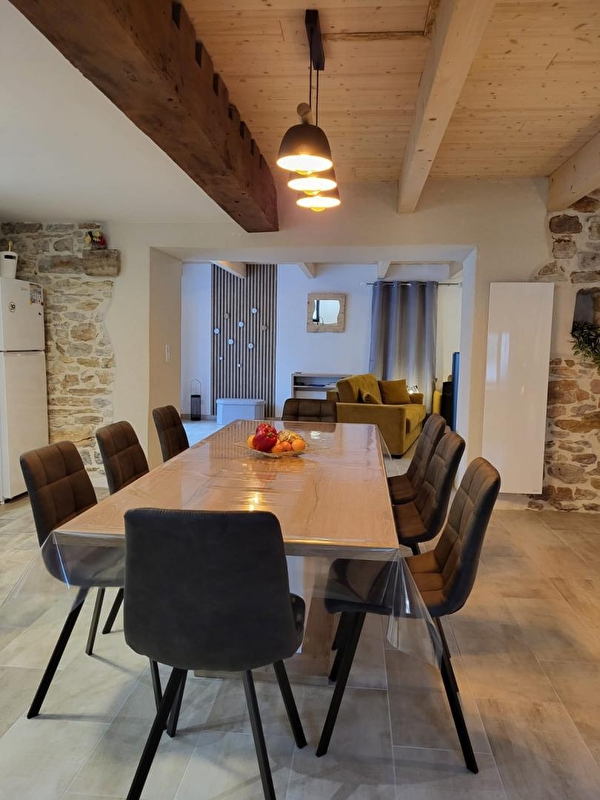 Cette maison indépendante saura vous séduire par l'alliance chaleureuse du bois et de la pierre. Elle se compose au rez-de-chaussée d'une pièce de vie avec cuisine toute équipée, espace salle à manger et coin salon avec poêle à granulés (fourni gratuitement) canapé convertible pour 2 personnes et TV, d'une salle d'eau avec douche et d'un WC indépendant. A l'étage, 3 chambres, l'une avec 1 lit double (160*200) et les 2 autres avec chacune 2 lits simples (90*190), une salle d'eau avec douche et WC. Pour votre plus grand confort, les lits seront faits à votre arrivée et les serviettes sont fournies. Côté extérieur, vous pourrez profiter d'une terrasse aménagée avec salon de jardin, transats et barbecue et d'un coin jardin, le tout entièrement clos. Idéalement situé, pour découvrir la ville thermale de Lons le Saunier et son musée de la Vache qui rit, la ville de Louhans et son célèbre marché, vous pourrez également pratiquer la randonnée sur les nombreux sentiers environnants.