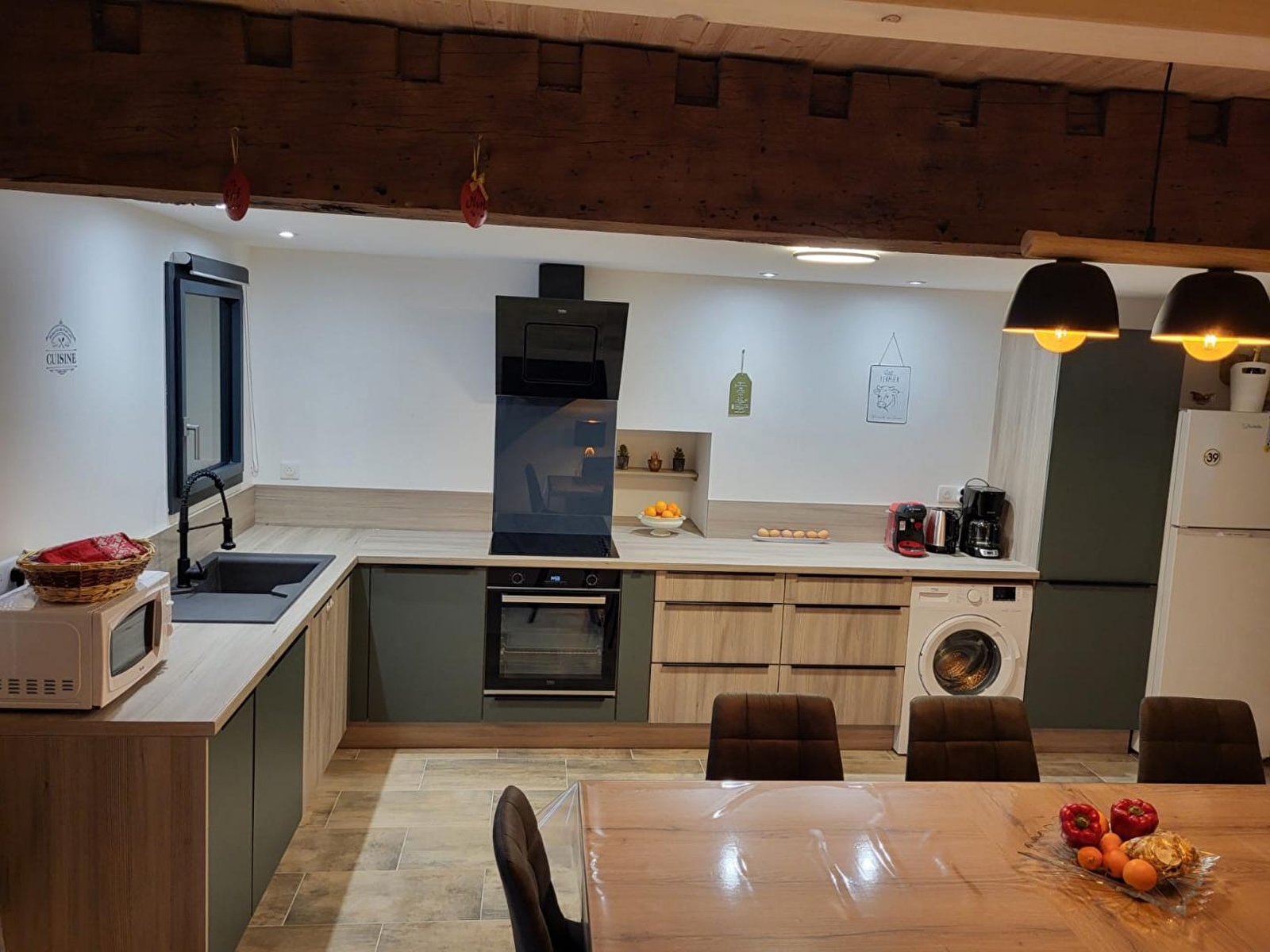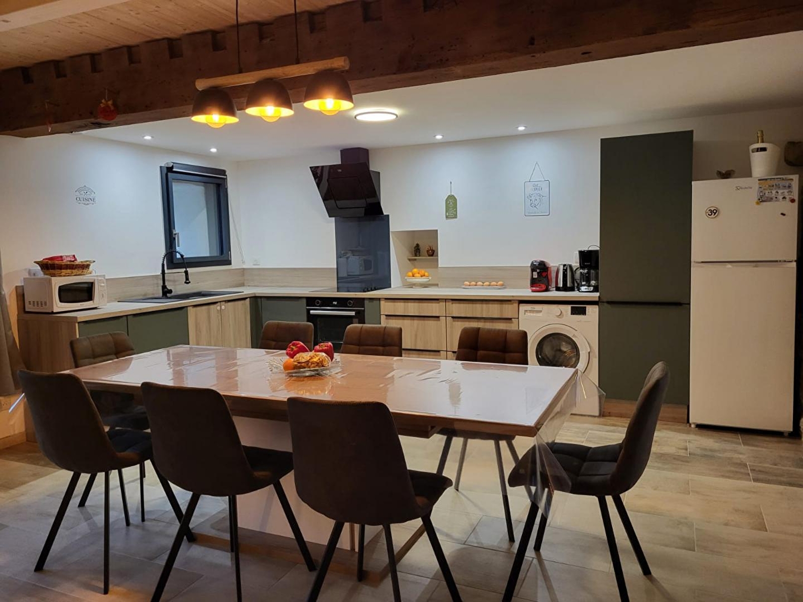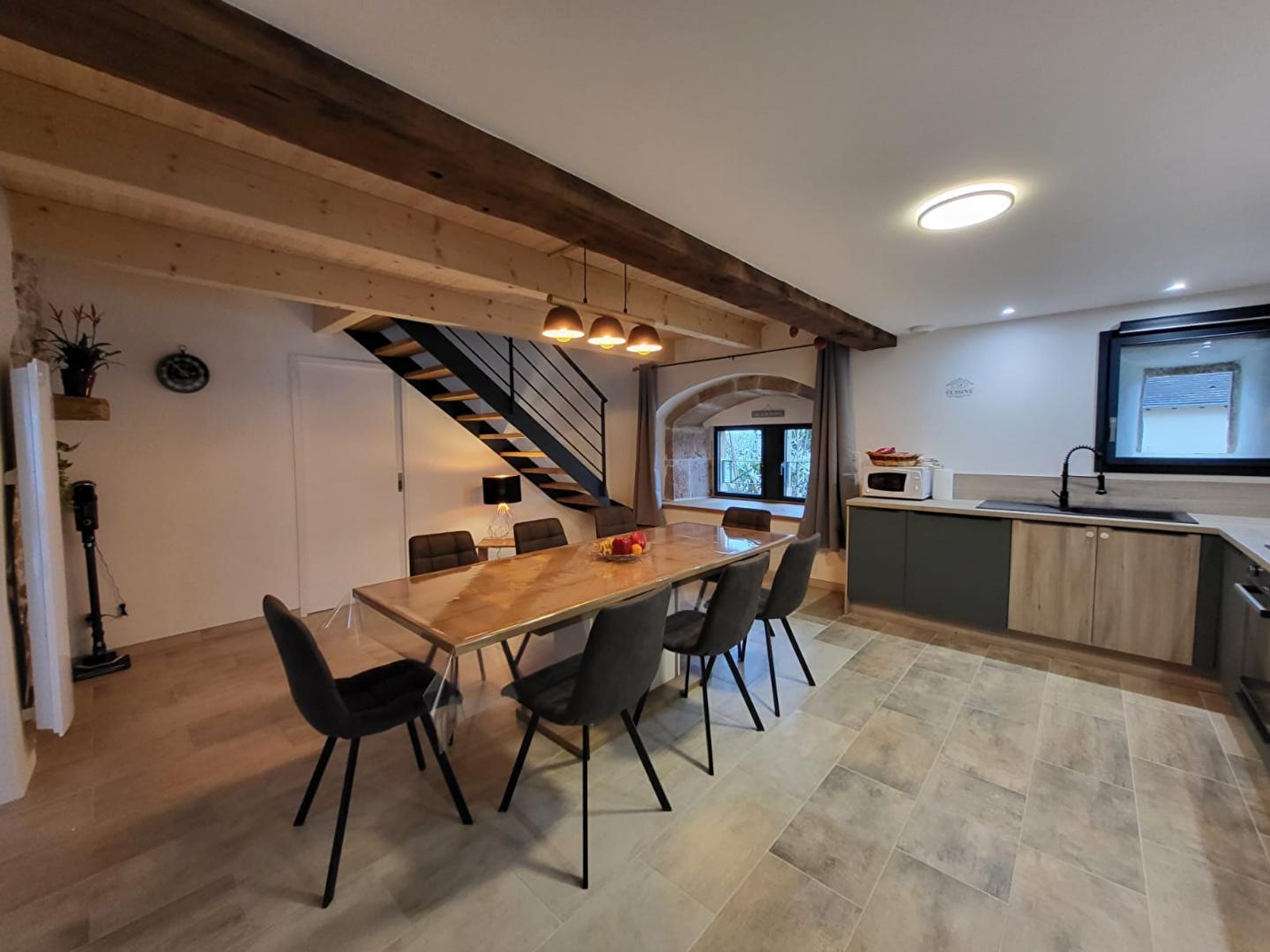 Cette maison indépendante saura vous séduire par l'alliance chaleureuse du bois et de la pierre. Elle se compose au rez-de-chaussée d'une pièce de vie avec cuisine toute équipée, espace salle à manger et coin salon avec poêle à granulés (fourni gratuitement) canapé convertible pour 2 personnes et TV, d'une salle d'eau avec douche et d'un WC indépendant. A l'étage, 3 chambres, l'une avec 1 lit double (160*200) et les 2 autres avec chacune 2 lits simples (90*190), une salle d'eau avec douche et WC. Pour votre plus grand confort, les lits seront faits à votre arrivée et les serviettes sont fournies. Côté extérieur, vous pourrez profiter d'une terrasse aménagée avec salon de jardin, transats et barbecue et d'un coin jardin, le tout entièrement clos. Idéalement situé, pour découvrir la ville thermale de Lons le Saunier et son musée de la Vache qui rit, la ville de Louhans et son célèbre marché, vous pourrez également pratiquer la randonnée sur les nombreux sentiers environnants.