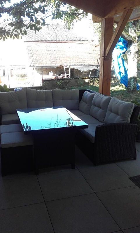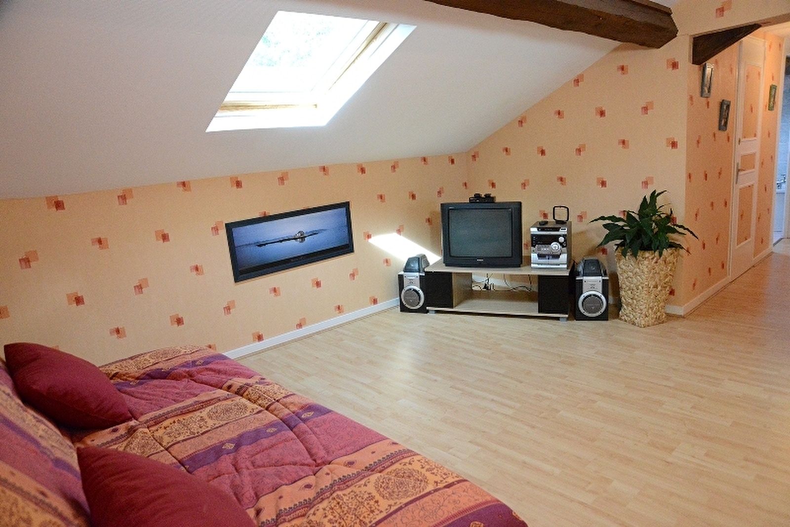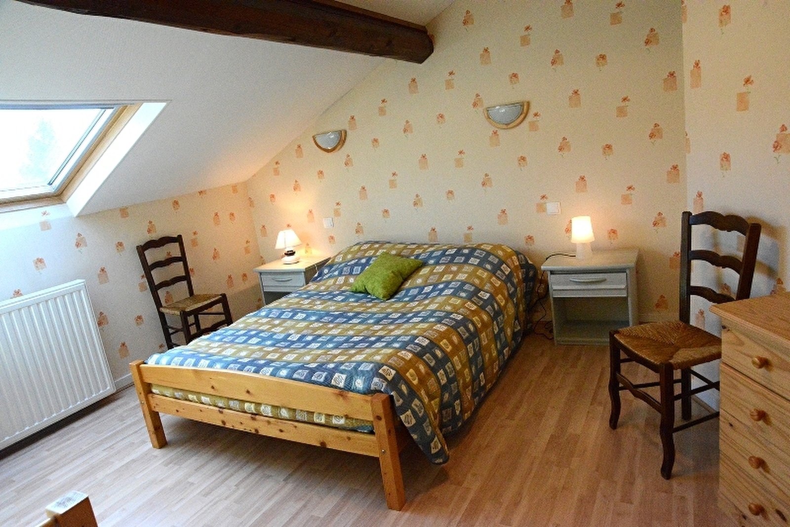 Au sud du département, au coeur du village et à proximité de la petite cité historique de St Amour, maison mitoyenne entièrement rénovée. Au 1er étage: vaste séjour-salon, coin cuisine intégré, congélateur, sèche linge, salle d'eau, une chambre avec 1 lit 2 places, au 2e étage: une première chambre avec 1 lit 2 place et une chambre avec 2 lits 1 personne, espace détente - jeux avec un canapé convertible, chaine hifi, TV, salle de bains. Chauffage central. Pour votre confort les draps sont inclus mais pas les linges de toilette. Terrasse, petit terrain attenant clos, salon de jardin, barbecue-plancha au gaz, table de ping pong. Toutes charges comprises. 2 vélos adultes et 1 enfant à disposition.