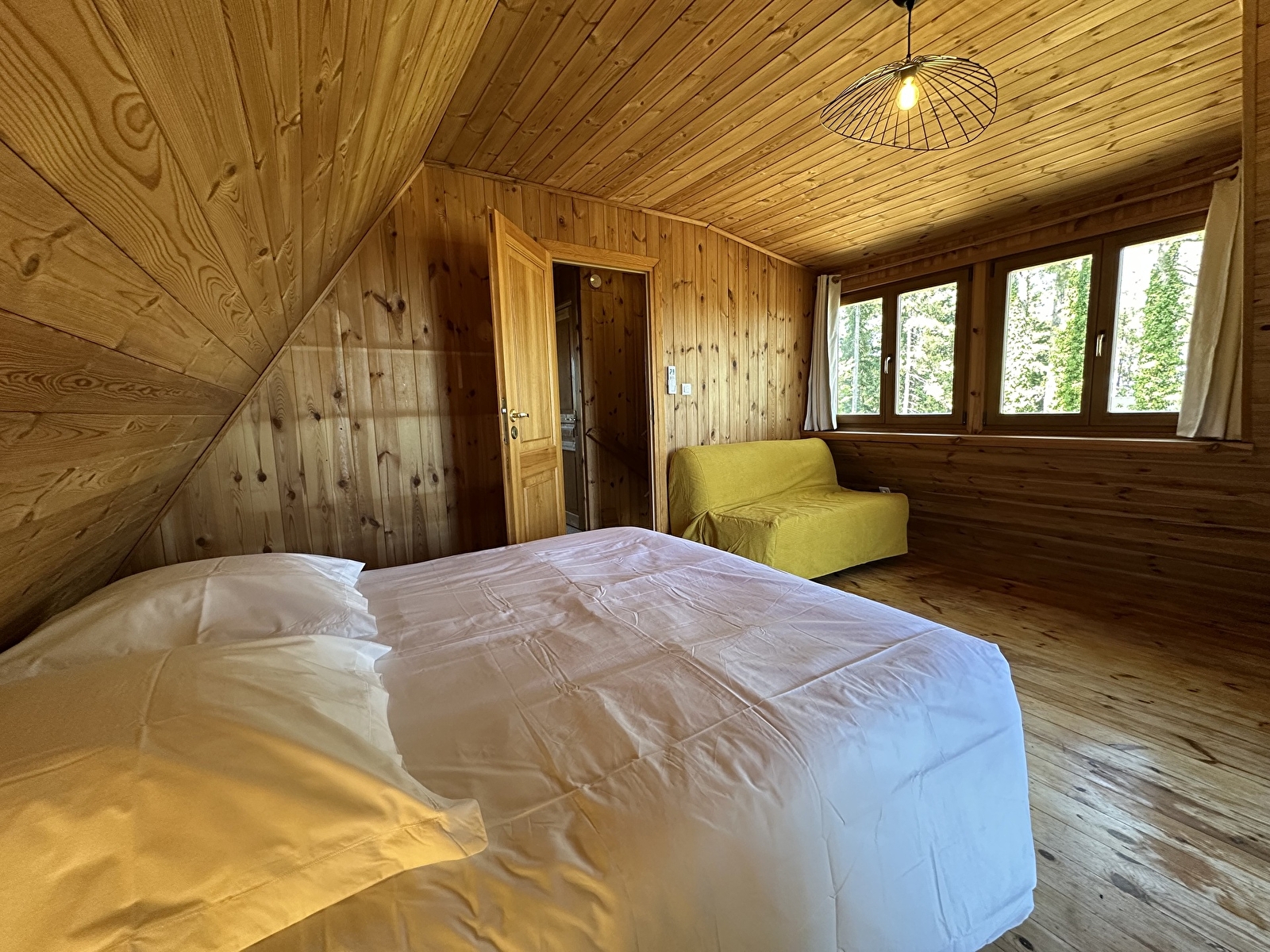 À 5 minutes à pieds du Parc des Combes et en voiture du centre-ville, au cœur de la nature... Totalement dépaysant : un chalet (capacité 8/10 personnes avec 2 chambres) dominant la vallée, panorama portant à 30 km et parfois sur le Mont-Blanc. Chalet indépendant comprenant au rez-de-chaussée, un séjour avec salon, TV et canapé convertible, une cuisine américaine équipée (réfrigérateur/congélateur, micro-ondes, plaque induction, four, lave-vaisselle, cafetière Nespresso, fer et table à repasser), salle d'eau avec douche, machine à laver et WC.