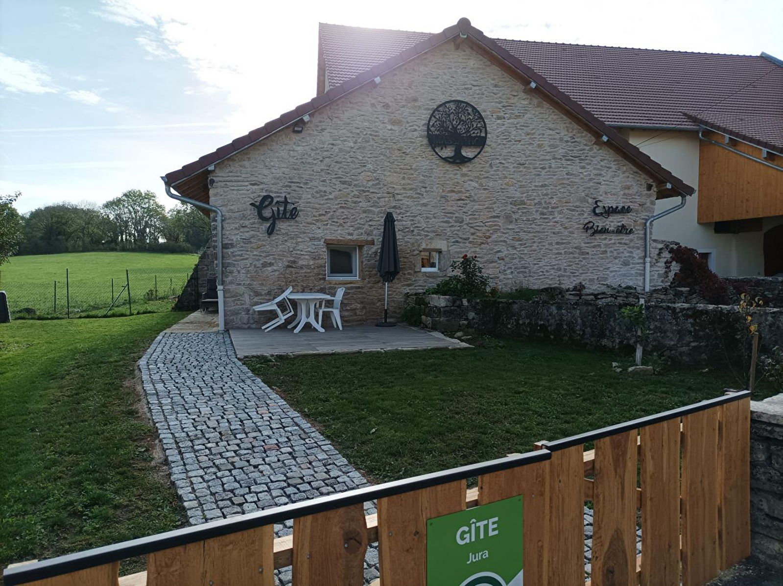 Le gîte Massatho entièrement rénové est aménagé dans une maison ancienne avec un espace parking dédié. La rénovation a été faite dans le respect de l'esprit des lieux en mettant les pierres et le bois à l'honneur. Il se compose d'une cuisine toute équipée, d'un coin salon ouvert sur la cuisine avec des fauteuils relaxants, d'une chambre avec un lit en 160x200 cm, d'une télévision et de divers espaces de rangement. d'une salle d'eau avec une douche spacieuse (120x90 cm), et d'un WC indépendant. Pour votre confort, le lit sera fait à votre arrivée, les linges de toilettes sont fournis et le ménage est inclus. Côté extérieur, une terrasse aménagée avec salon de jardin, transats et barbecue vous permettra de profiter de la quiétude du lieu. Il est situé à moins de 20 minutes des sites naturels et historiques les plus connus du Jura : Château-Chalon, reculée et abbaye de Baume-les-Messieurs, vignobles d'Arbois et Pupillin, Maison du Comté de Poligny, lac de Chalain, cascades du Hérisson, et, à moins d'une heure d'Arc-et-Senans et de la Grande Saline de Salins-les-Bains. Un point de chute idéal pour les amateurs de sports, d'espaces naturels et de visites patrimoniales. Un espace "Massatho bien-être", mitoyen au gîte, vous propose divers massages selon vos souhaits, des séances de sauna et une zone de repos et lecture (renseignements sur ces prestations auprès des propriétaires). Le village de Fay-en-Montagne propose aussi d'autres loisirs avec une location de trottinettes électriques (FOx'Trott) et des balades à cheval (ferme équestre Juan) pour varier les plaisirs !
