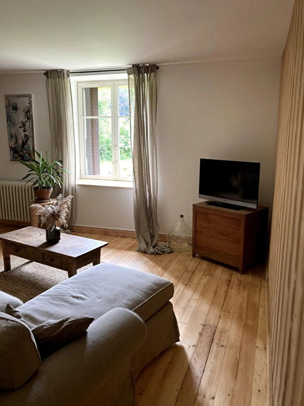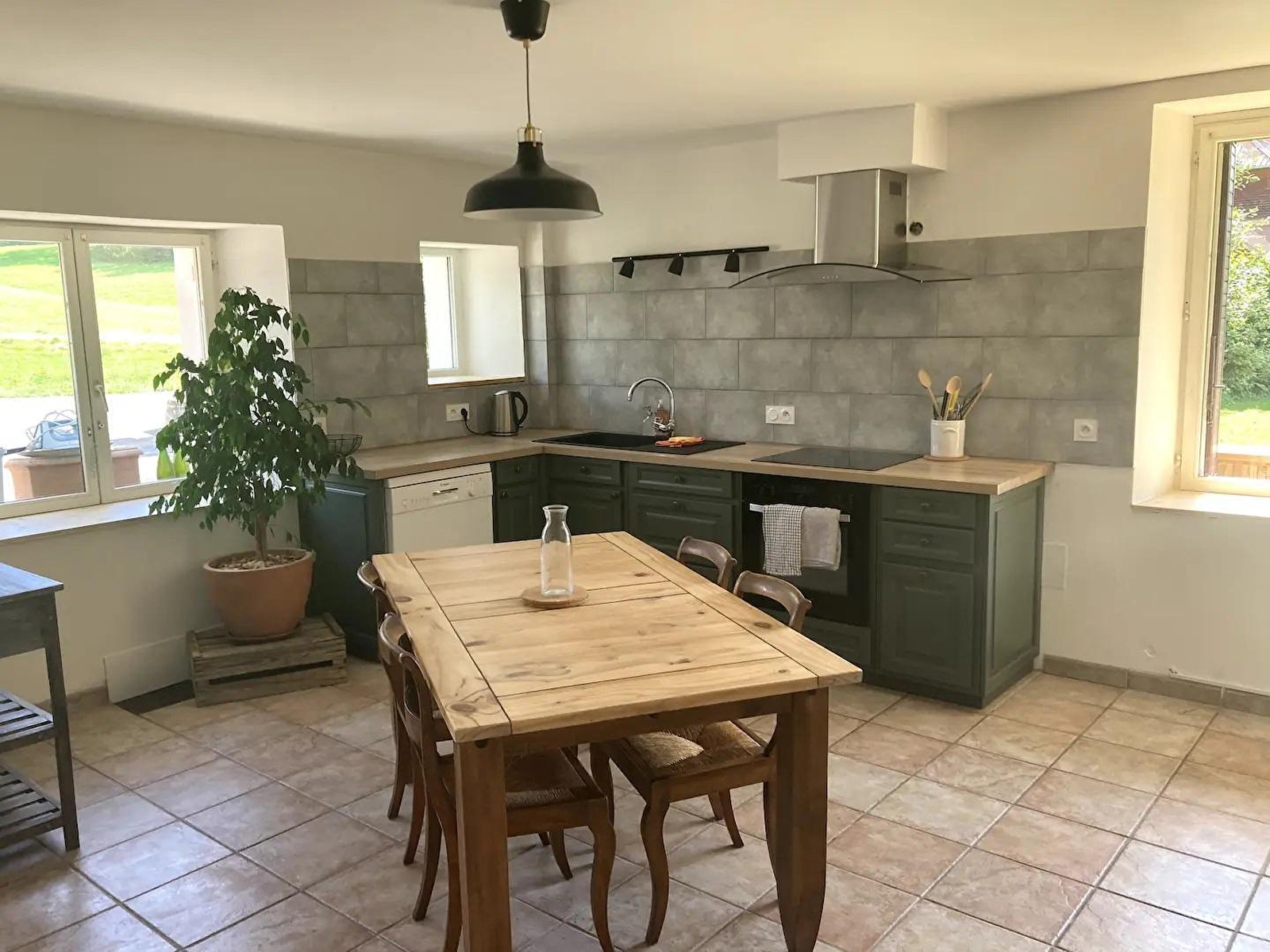 Laissez-vous charmer par ce gîte où l'alliance de la pierre et du bois confère une atmosphère chaleureuse et cocooning. Aménagé dans une ancienne ferme et mitoyen à la maison des propriétaires, cet appartement de plain-pied entièrement rénové, se compose d'une cuisine toute équipée, d'un salon avec TV, d'une chambre avec 1 lit double (160*200) et d'une salle d'eau avec douche et WC. Pour votre plus grand confort les lits seront faits à votre arrivée et les linges de toilettes sont fournis. Côté extérieur, vous pourrez profiter d'un salon de jardin, de transats et d'un barbecue. Idéalement situé pour les amateurs de loisirs de pleine nature : randonnée pédestre, VTT, ski de fond... vous pourrez également découvrir la cascade de la Billaude (7 kms) et les cascades du Hérisson (11 kms) ou vous laissez tenter par une excursion en Suisse (35 kms) Note : gîte pour 11 personnes situé au 1er étage de celui-ci (G2465)