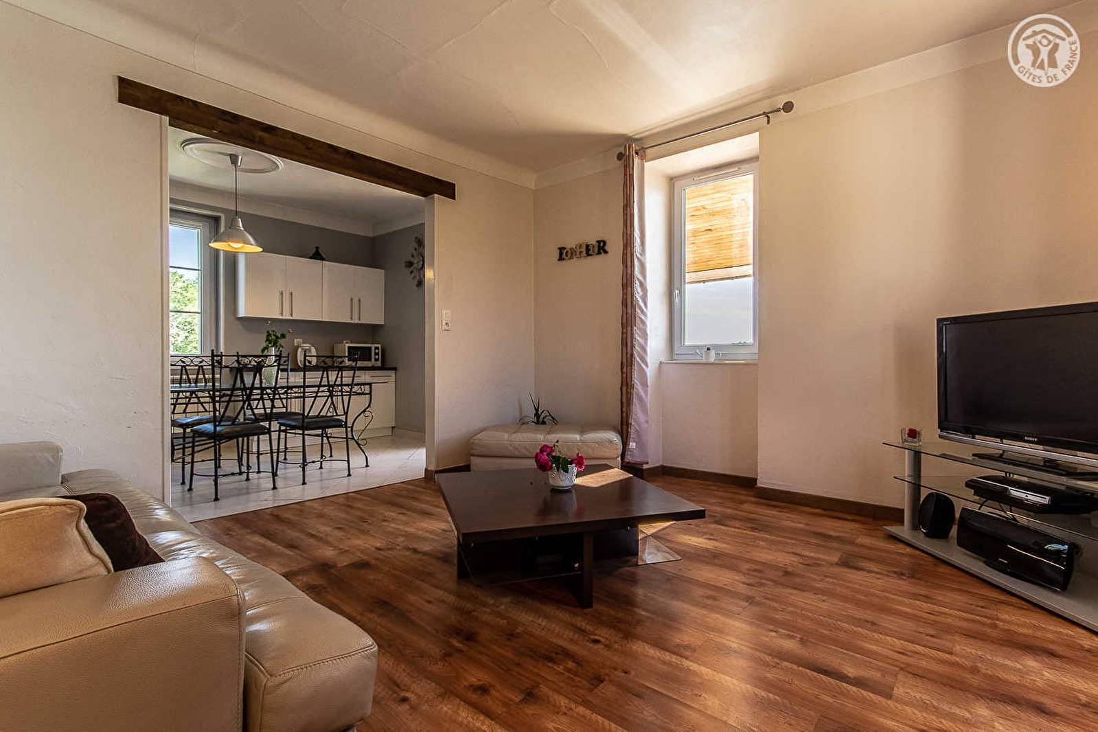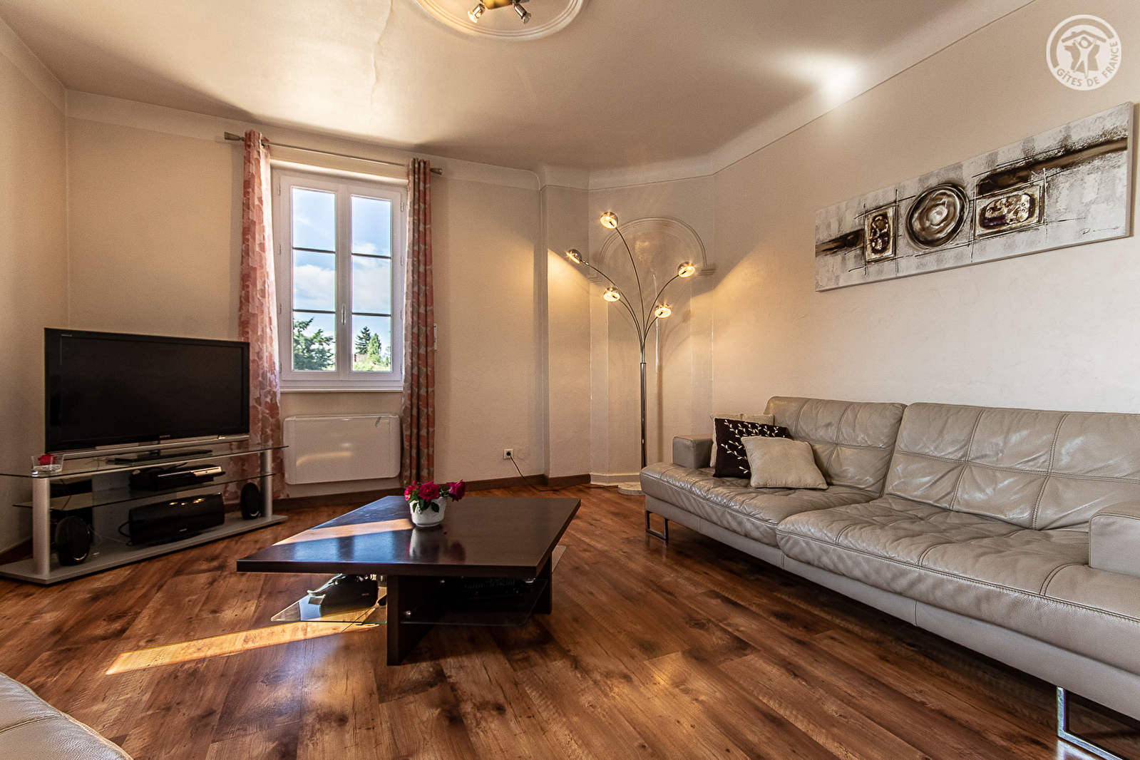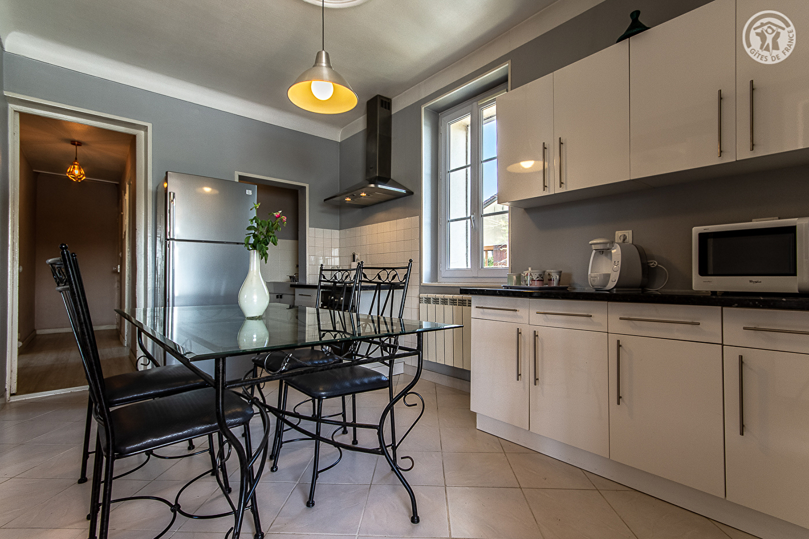 Composition : Gîte au 1er étage mitoyen à l'habitation des propriétaires (totale indépendance sans vis-à-vis). Wifi (fibre). Console PS3 Home cinéma. Chauffage électrique. Cuisine-séjour-salon, 1 chambre (lit 2 p. en 160x200cm), salle d'eau (douche), Wc indépendant. Balcon-terrasse abrité privé. Terrain clos commun (1500m²). Parking privé. Local vélos fermé et sécurisé. Commerces 3 km. Toutes commodités 7 km. Gare 8 km. Gare TGV Mâcon Loché 14km.