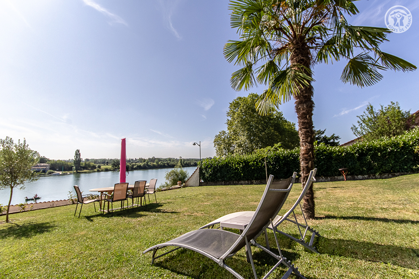 Fernando et Agueda vous accueillent au sein d'une charmante maison de pays de 1843 intégralement restaurée & chargée d'histoire - l'une des plus anciennes bâtisses référencées des lieux - sise sur une propriété close de 1500m² particulièrement soignée (portail électrique & grande cour pavée), dotée d'une exceptionnelle rente de situation, lovée sur les rivages de la Saône en bordure de l'historique chemin de halage qu'occupe aujourd'hui la voie bleue (accès direct !). Au calme, au cœur d'un ravissant hameau résidentiel blotti à flanc de coteau exposé, dominant le fleuve en "balcon". Situation privilégiée entre ville & campagne au creux d'un cadre bucolique enchanteur, littéralement reposant & relaxant, en toute proximité de l'intégralité des commodités. A 7 km du centre-ville de Mâcon la plus méridionale cité de Bourgogne, berceau du célèbre poète Lamartine (labellisée "Station Classée de Tourisme") riche d'un patrimoine historique notable (Église St-Pierre, maison de bois, Hôtel Dieu, cathédrale romane St-Vincent, couvent des Ursulines…) et de charmants quartiers piétons à découvrir. Spacieux gîte de bon confort. Chaleureux cachet campagnard contemporain à l'ambiance douce. Agréable balcon-terrasse panoramique abrité. Jardin très soigné, végétalisé et fleuri (partagé avec les propriétaires) avec balançoire, espaces ludiques de repos et petit poulailler (sans nuisance). Belle vue dégagée sur la Saône et la campagne environnante (plaines de la Bresse bourguignonne). Magnifique panorama & paysage.
