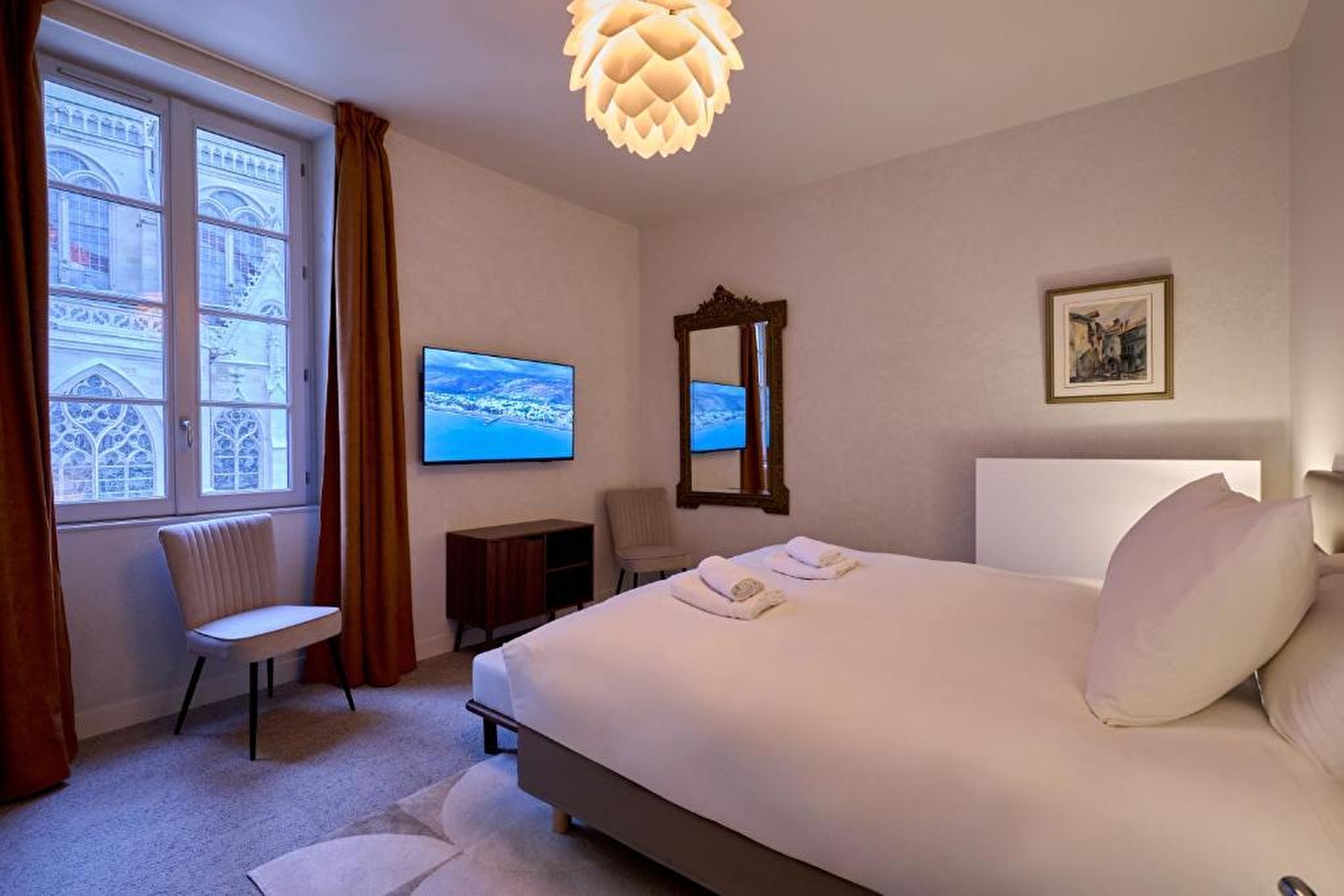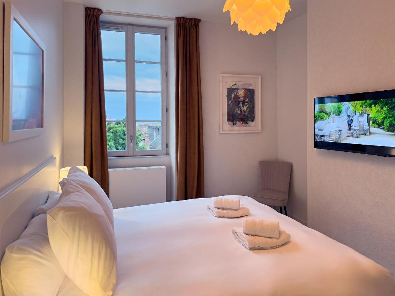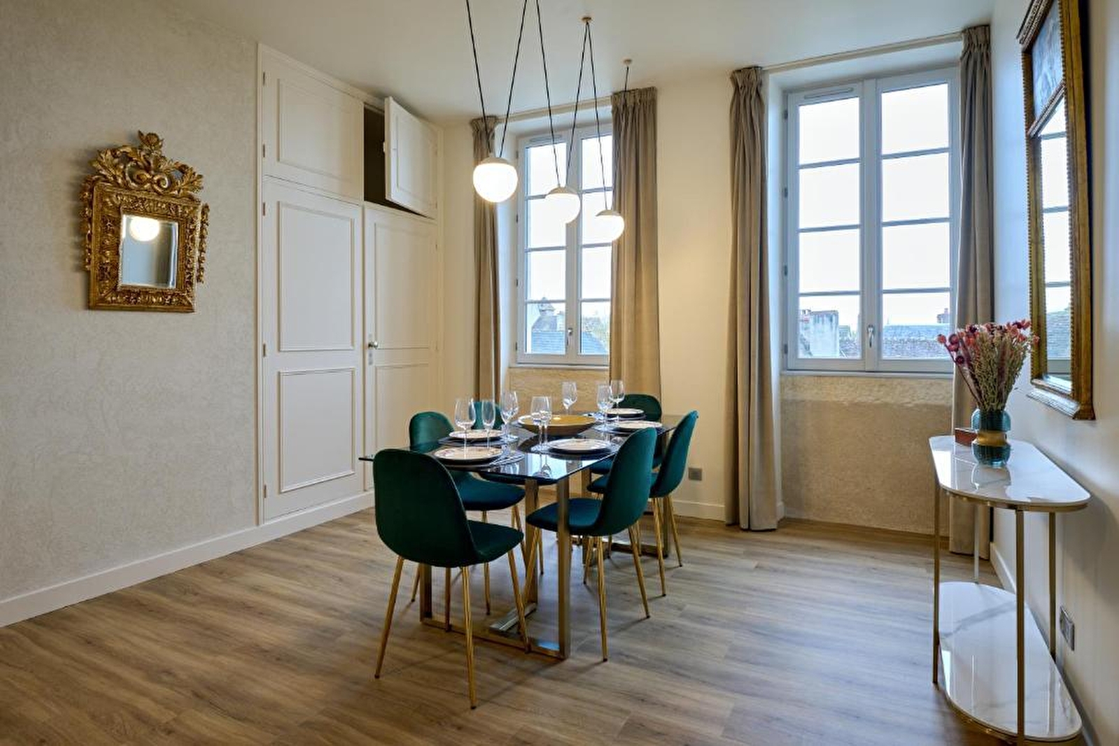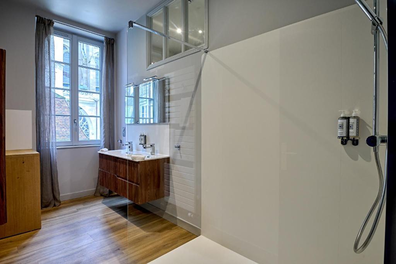 Situé en hyper centre de Nevers, proche de la Cathédrale et du Palais de Justice, dans une résidence privée « Les Suites du Palais » avec parking, ce grand appartement calme et lumineux sera l’endroit parfait pour votre séjour professionnel, en famille, entre amis ou entre collègues !
