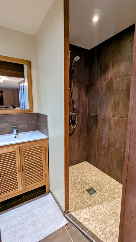 Salle d'eau et WC indépendant. Chauffage central gaz compris. Climatisation au rez -de- chaussée et sur le palier à l'étage. TV. Cour- terrasse avec tonnelle.