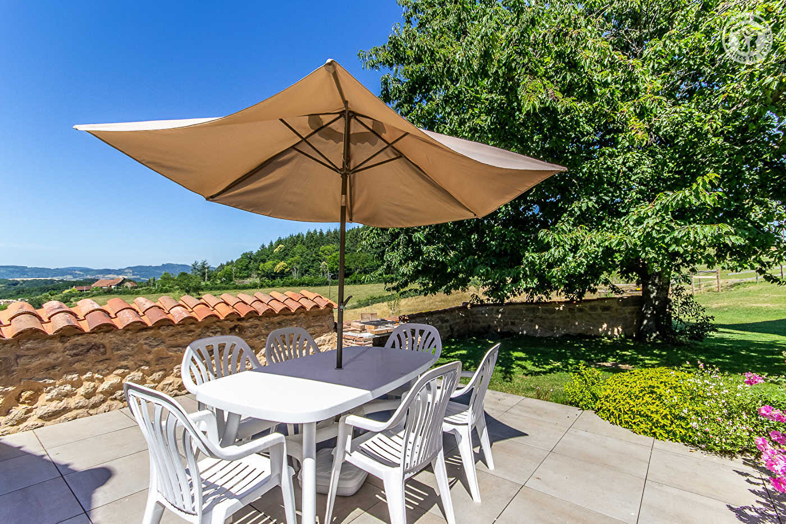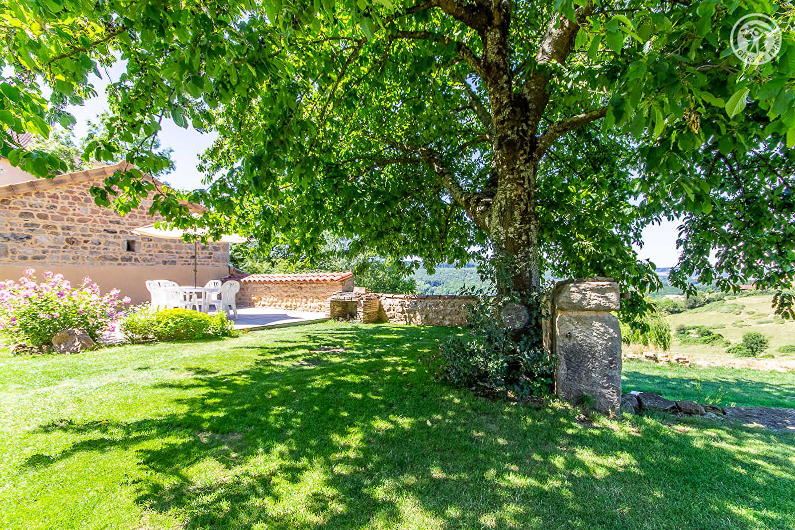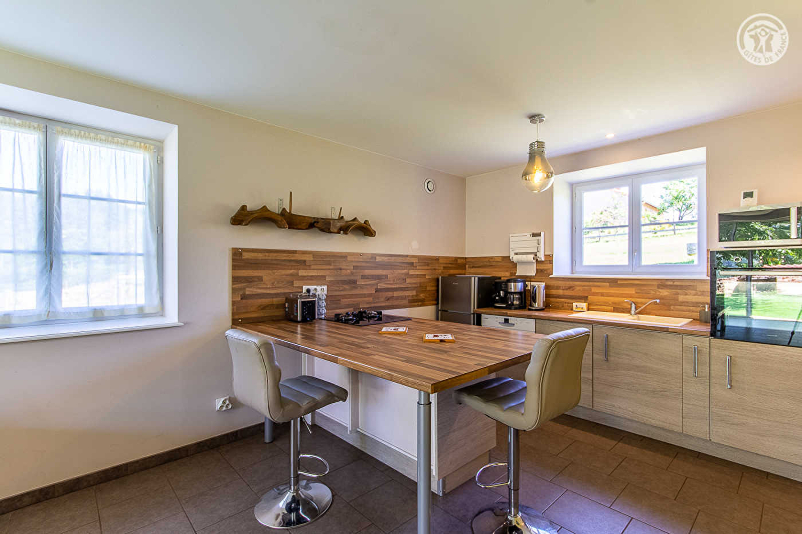 Ravissant authentique corps de ferme de caractère du XIXe, intégralement restauré dans les règles de l'art, niché "en balcon" à flanc de coteau sud-ouest au sein d'un charmant petit hameau rural résidentiel, adossé sur un plateau bien exposé dominant un bucolique cirque vallonné avec la "Butte de Suin" en toile de fond, iconique sentinelle panoramique de Saône-et-Loire culminant à 600m d'altitude. Calme absolu en pleine campagne clunisoise, en lisière immédiate de prairies (avec les paisibles vaches charolaises comme proches voisines en saison) & d'une vaste forêt domaniale en grande partie protégée en "Zone Natura 2000" pour son remarquable écosystème (parsemée de nombreux chemins de randonnées balisés en pleine nature dont le GR76 qui serpente sur ses crêtes). Cadre & site champêtre de montagne douce littéralement enchanteur, au creux d'un magnifique écrin préservé de nature & verdure, alternant vastes bocages, étangs, rivières et collines boisées. Belle vue dégagée. Superbe panorama & paysages. Particulièrement soignée & fleurie, cette vaste propriété ouverte sur la campagne environnante propose une belle piscine (7x3m), une large terrasse panoramique exposée, un agréable jardin privatif "à l'ombre" d'un majestueux merisier, le potager du propriétaire (cueillette de légumes frais possible avec son accord !) et un vaste espace engazonné en commun. Spacieux gîte de très bon confort. Chaleureux cachet campagnard aux accent contemporains. Ambiance zen & douce.