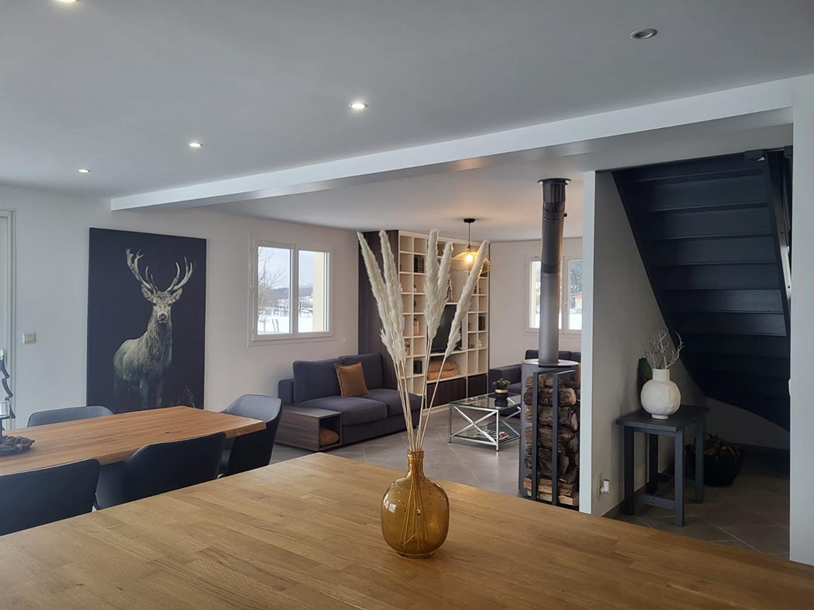 A la recherche d'un hébergement cosy pour vous retrouver en famille ou entre amis? Alors ne cherchez plus, cette maison est faite pour vous! Christelle et Pierre l'ont entièrement rénovée avec des matériaux et des équipements de qualité pour vous offrir un confort optimum. Elle se compose au rez-de-chaussée d'une vaste pièce de vie lumineuse offrant une vue panoramique sur les champs environnants et le plateau de Nozeroy avec cuisine toute équipée, grande salle à manger, et coin salon avec grand canapé, télévision et poêle à bois. Au même niveau, chambre avec lit double (160x200), salle de bain avec baignoire balnéothérapie et douche, WC indépendant, coin bureau et buanderie (lave-linge et sèche-linge). A l'étage, une grande mezzanine avec canapé et home cinéma, 2 chambres avec 2 lits simples pouvant être jumelés, une chambre avec 1 lit double (160x200) et une grande salle d'eau avec douche et WC. Pour votre plus grand confort, les lits seront faits à votre arrivée et les linges de toilettes sont fournis. Côté extérieur, une vaste terrasse aménagée avec salons de jardin, barbecue et transats, vous permettra de profiter des beaux jours et de la vue exceptionnelle. En contrebas, une grande pelouse sera un terrain de jeu idéal pour les enfants. Équipements intérieurs : Home cinéma / Baignoire balnéothérapie / Congélateur Équipements extérieurs : Barbecue / Table et salon de jardin Idéalement situé pour les amateurs de randonnées, de ski ou de vélo. Vous pourrez également découvrir de nombreux lacs et cascades (lac de Chalain, cascades du Hérisson, gorges de la Langouette...), la cité médiévale de Nozeroy ou encore les célèbres villages de Baume les Messieurs et Chateau-Chalon. Sans oublier bien sûr prendre le temps de déguster nos produits régionaux : comté, Morbier, Mont d'Or, saucisse de Morteau...