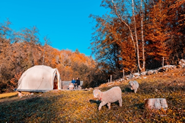Quand la Terre d'Emeraude se pare d'orange, les possibilités sont multiples... Rendez-vous au lac d'Etival pour profiter de ce havre de paix.  Au programme: un déjeuner panoramique avec vue sur le lac Vouglans, randonnée bucolique, nuit insolite dans une bulle ou encore randonnée à la cascade de la Quinquenouille...