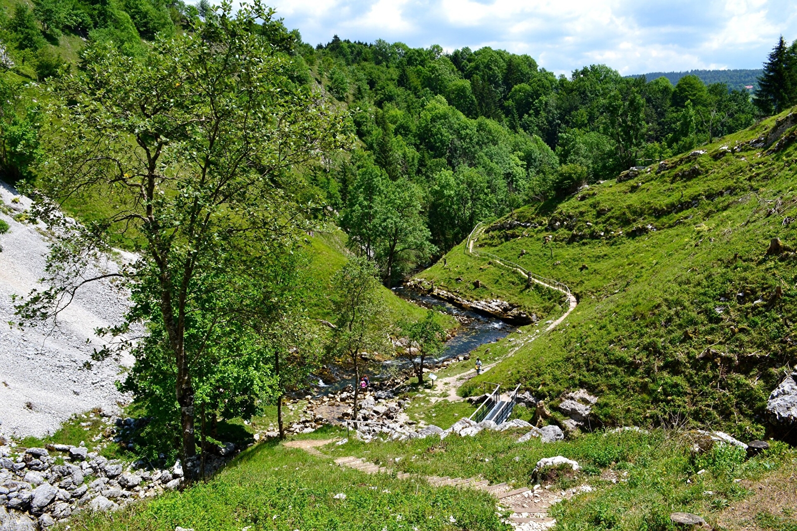Au départ de Foncine-le-Haut, le tour de la haute vallée de la Saine est un magnifique circuit nécessitant de bonnes qualités physiques mais ne présentant pas de grandes difficultés techniques, idéal à VTTAE. Au sein d’un site classé, on découvrira en chemin plusieurs sites naturels spectaculaires. Le parcours emprunte également dans les gorges de Malvaux, les tunnels et viaducs de l’ancienne voie du tram en offre une vue sur les cascades du Bief de la Ruine. Suivre le balisage n°21 noir