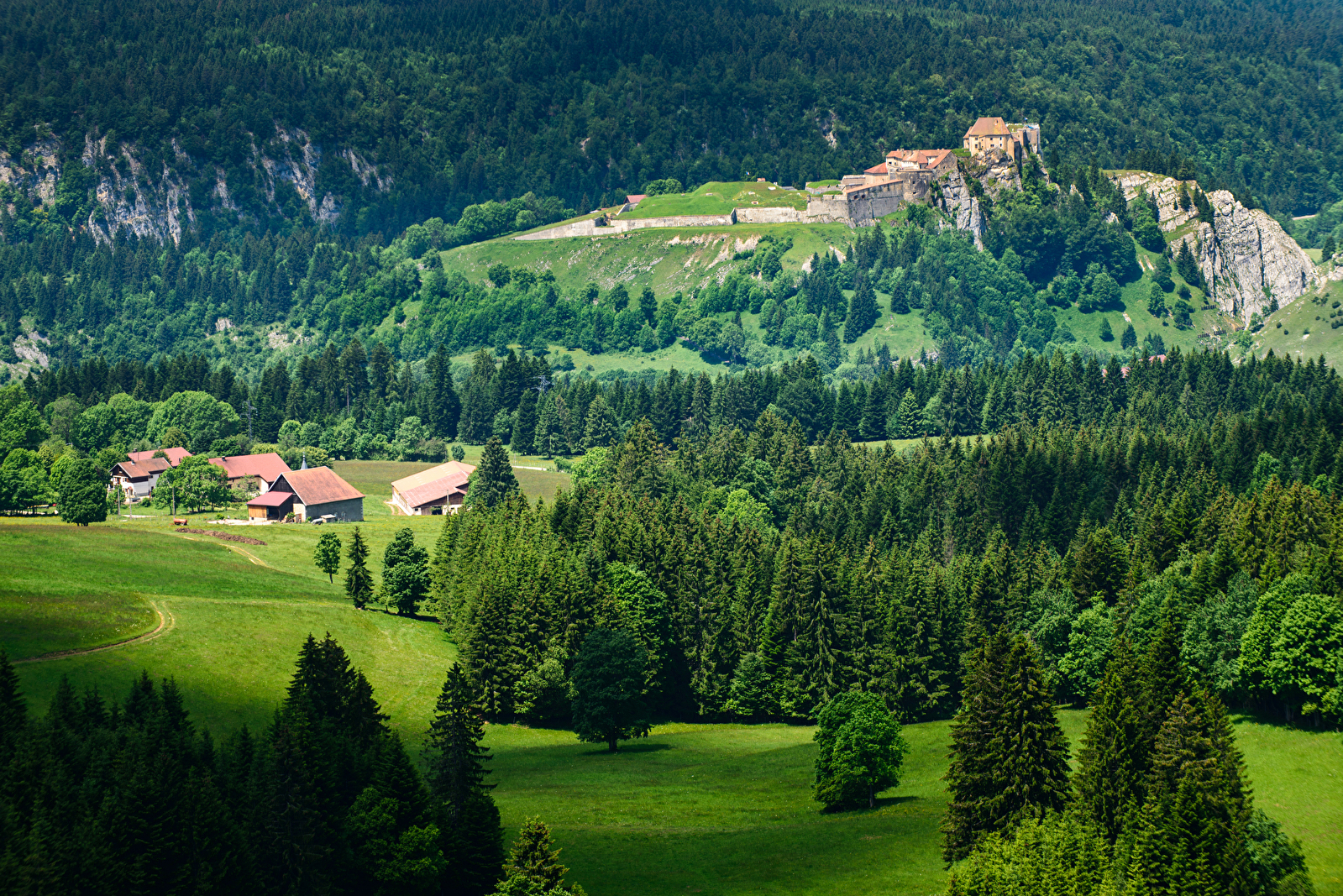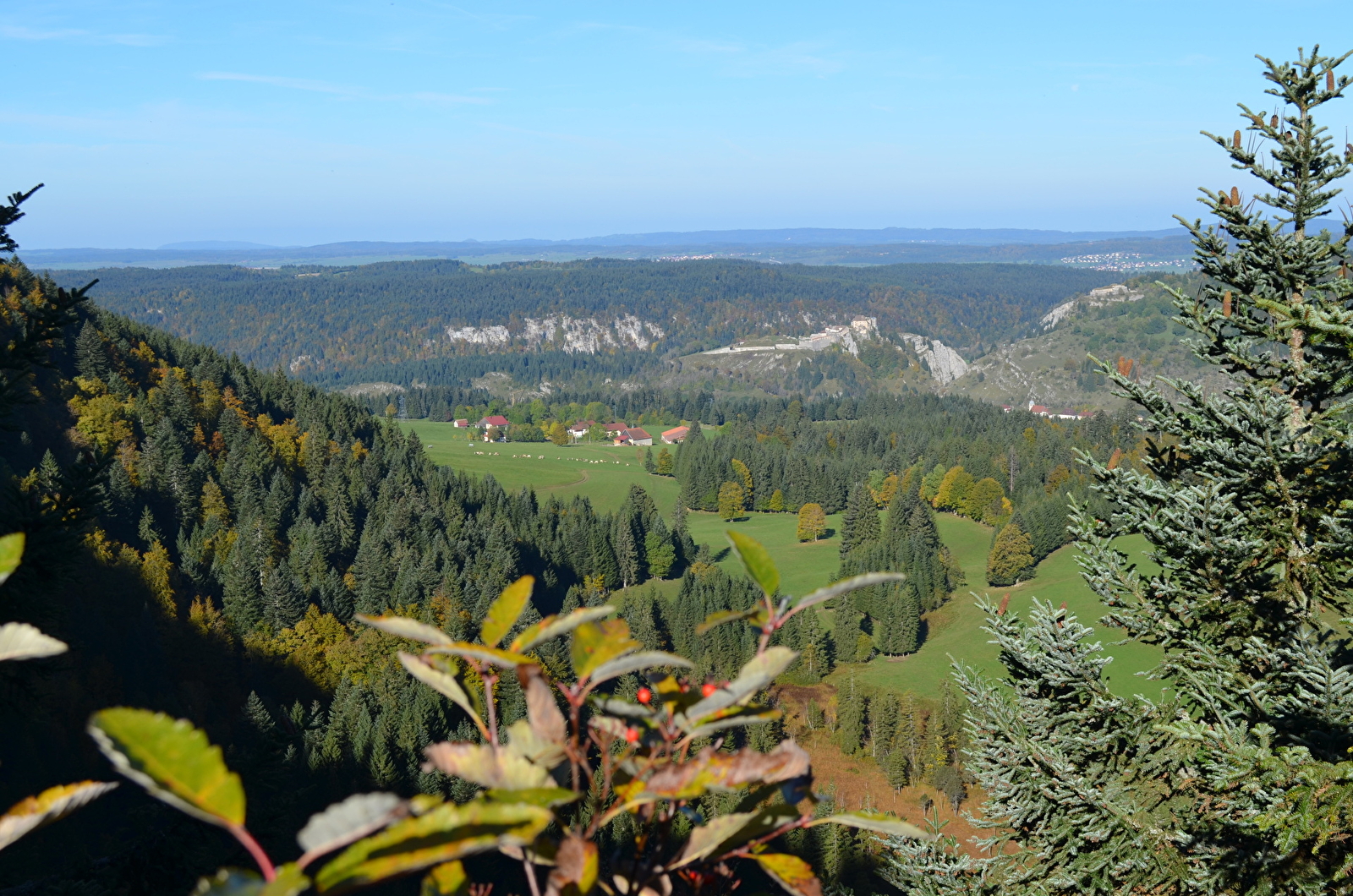 À plus de 1000 m d’altitude, le circuit explore toutes les facettes de ce haut plateau, conduit au belvédère de la Roche Sarrazine et sa table panoramique.