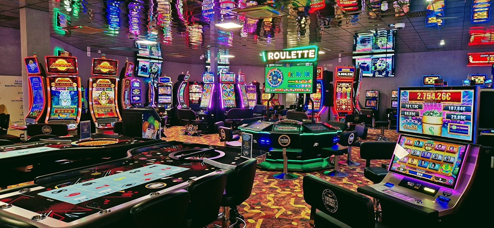 Les jeux électroniques 75 machines à sous, 8 postes de Roulette anglaise, 7 postes de Blackjack de 10h à 02h en semaine et 03h les vendredis & samedis.