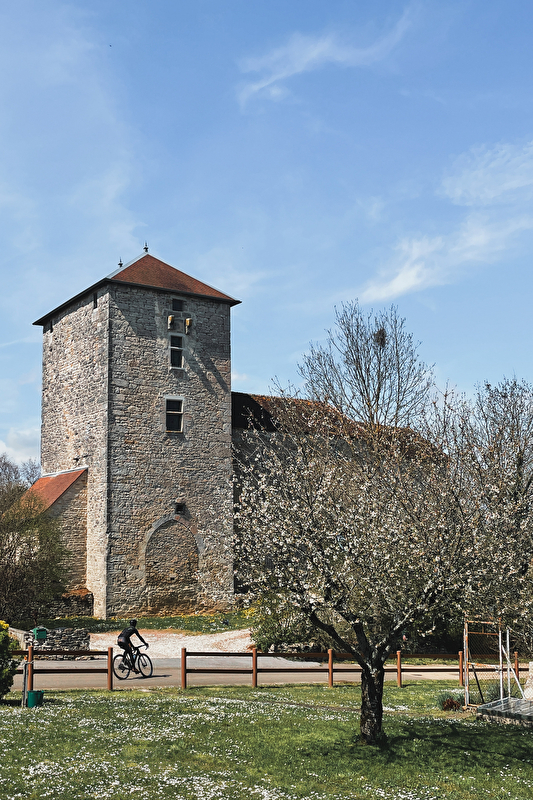 Vous ne trouverez pas cette boucle dans les guides touristiques ! Accessible en TER (à 10 minutes de Besançon) comme par l’EuroVélo 6, ou l’autoroute A36, elle vous fait parcourir les collines agricoles et le patrimoine médiéval du Saint-Vitois : lavoirs, châteaux, vignobles, étangs… Certaines portions peuvent être court-circuitées pour un parcours un peu moins long, notamment au niveau du Moutherot, pour contourner le dénivelé.
