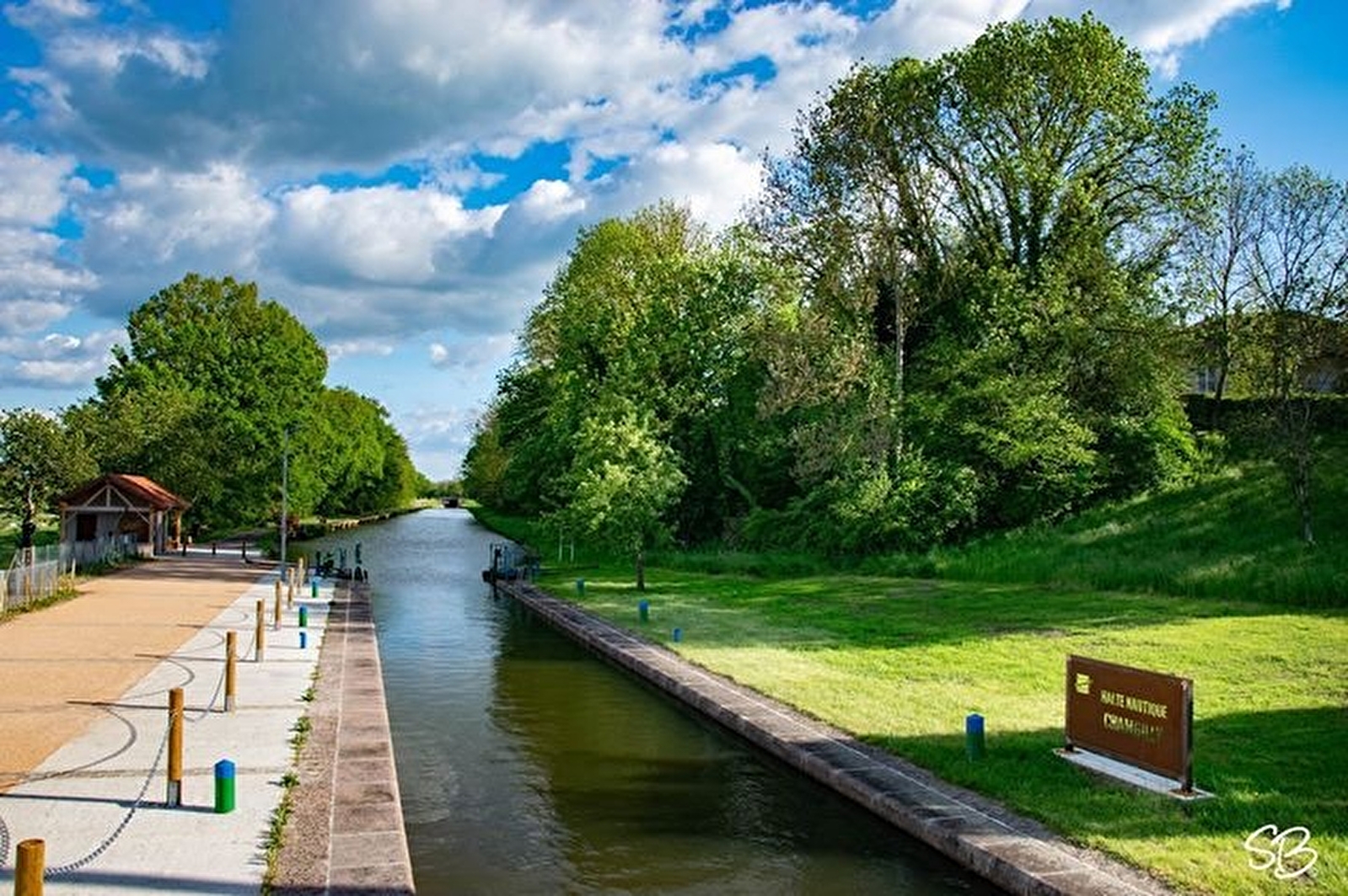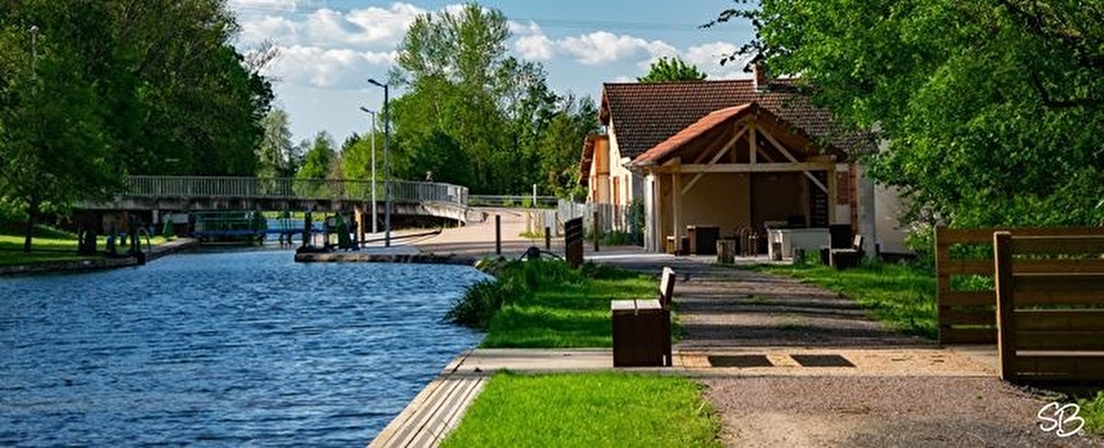 Aire de pique-nique vers la halte nautique sur le canal de Roanne à Digoin.