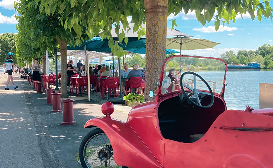 Avant de reprendre la route, offrez-vous un dernier moment de détente à la terrasse de la guinguette de Seurre, face à un coucher de soleil à couper le souffle.