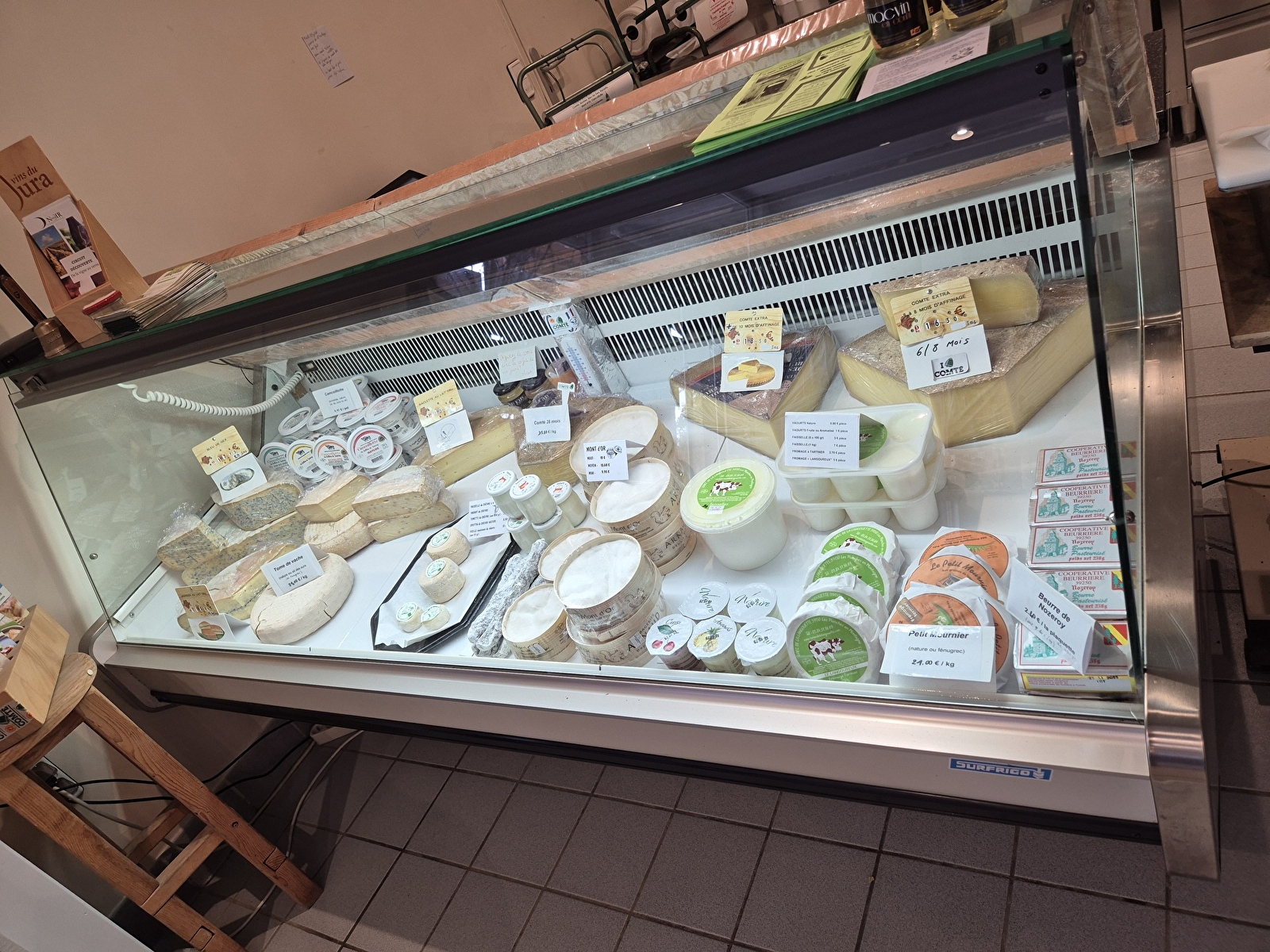 De nombreux produits du terroir à découvrir sur place : Comté AOP de différents affinages, Morbier au lait cru AOP, bleu de Gex AOP, raclette au lait cru, Mont d’Or AOP en hiver, beurre de Nozeroy, vin, miel…