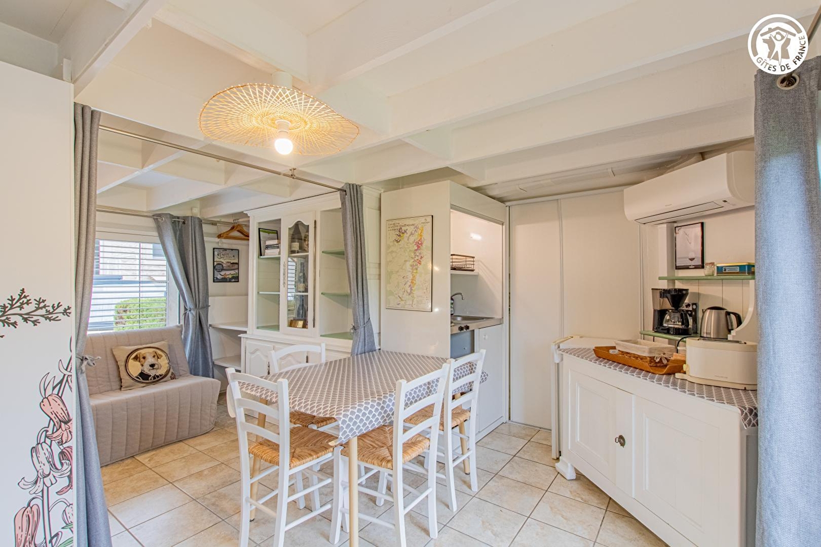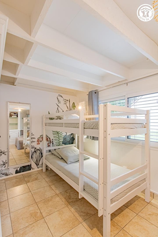 Composition : 2 appartements d'hôtes en accès totalement indépendant avec coins cuisine équipés et terrasses privatives. Chauffage PAC. Climatisation. Wifi (fibre). 1 chambre au rdc d'une aile de la maison des propriétaires (lit 2 p. 140x200cm) avec salle d'eau privée (douche/wc). 1 chambre au rdc d’un petit pavillon indépendant jouxtant la maison des propriétaires (lit 2 p. 140x200cm + 2 lits 1 p. de 90x190cm superposés) avec salle d'eau privée (douche/wc). Jardin clos avec portail électrique (2500m²). Piscine chauffée (8x4m). Parking privé. Local vélos. Petits déjeuners servis dans les chambres en horaires libres. Commerces 4 km. Restaurant 2 km.