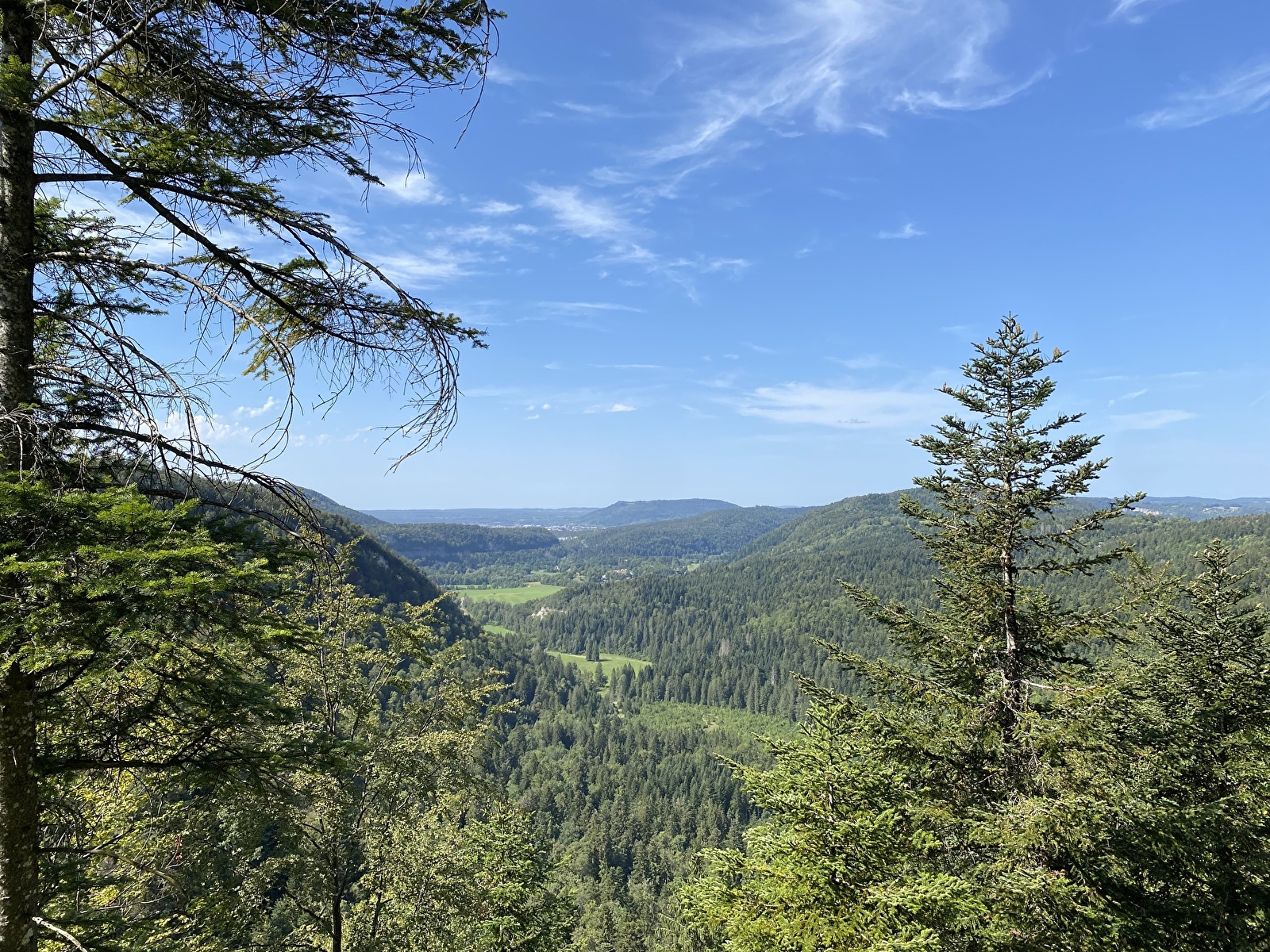 Le point de vue offre une perspective remarquable sur la plaine de Syam, ses multiples collines et le point de confluence entre les rivières de la Lemme, la Saine et l'Ain.