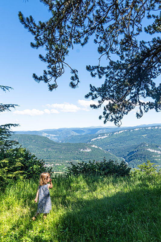 À 800 m d’altitude, ce site naturel classé, offre un superbe panorama sur la chaîne du Haut-Jura. Le belvédère est équipé d’une table d’orientation pour mieux se repérer. Des aménagements sont aussi présents pour une pause pique-nique.