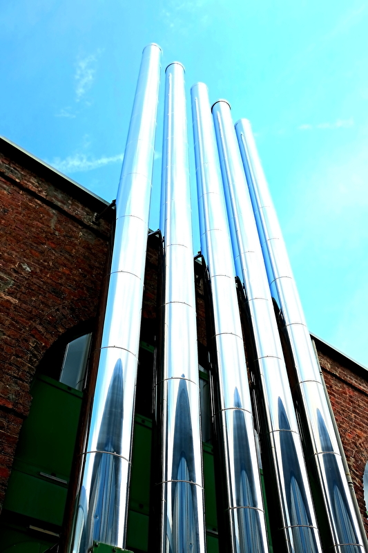 Face au château de la Verrerie, se situaient la plateforme qui surplombait les hauts fourneaux et les installations nécessaires à leur fonctionnement : chaudières à gaz, fours à coke, estacades de déchargement du minerai, bassins de décantation. Quand les hauts fourneaux cessèrent leur activité en 1935, le site devint une friche industrielle. Il fut réaménagé en jardin public et on peut y voir des vestiges des activités passées.