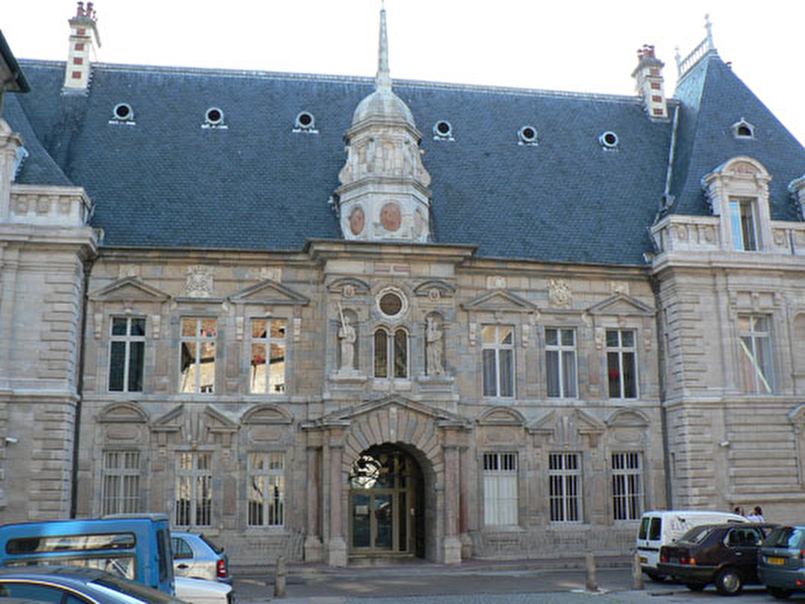 Derrière l'hôtel de ville, réalisé par l'architecte Hugues Sambin. Au-dessus du porche fermé par une belle grille d'entrée (1861) deux figures allégoriques symbolisent la force et la justice. Fenêtres nombreuses à frontons alternés, mufles de lions, masques, profils de mascarons viennent rythmer cette façade renaissance.