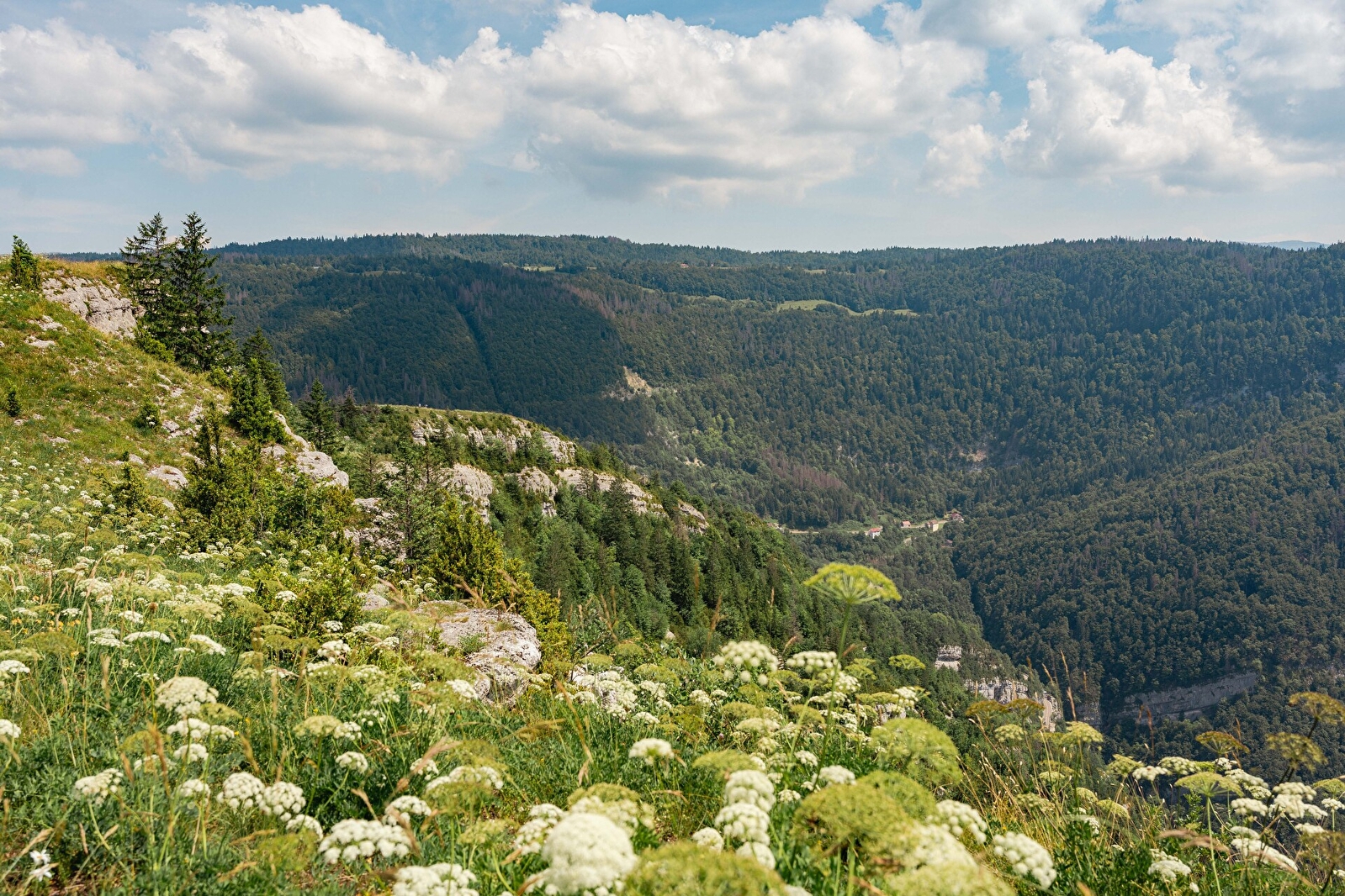 Les Grès de Septmoncel, site classé avec arrêté de protection de biotope, domine la vallée et les gorges du Flumen. Il témoigne de l’activité tectonique qui a formé la chaîne jurassienne et offre un beau panorama sur les reliefs alentours. Pour observer ses plis caractéristiques, le belvédère de la Roche Blanche est le lieu idéal !