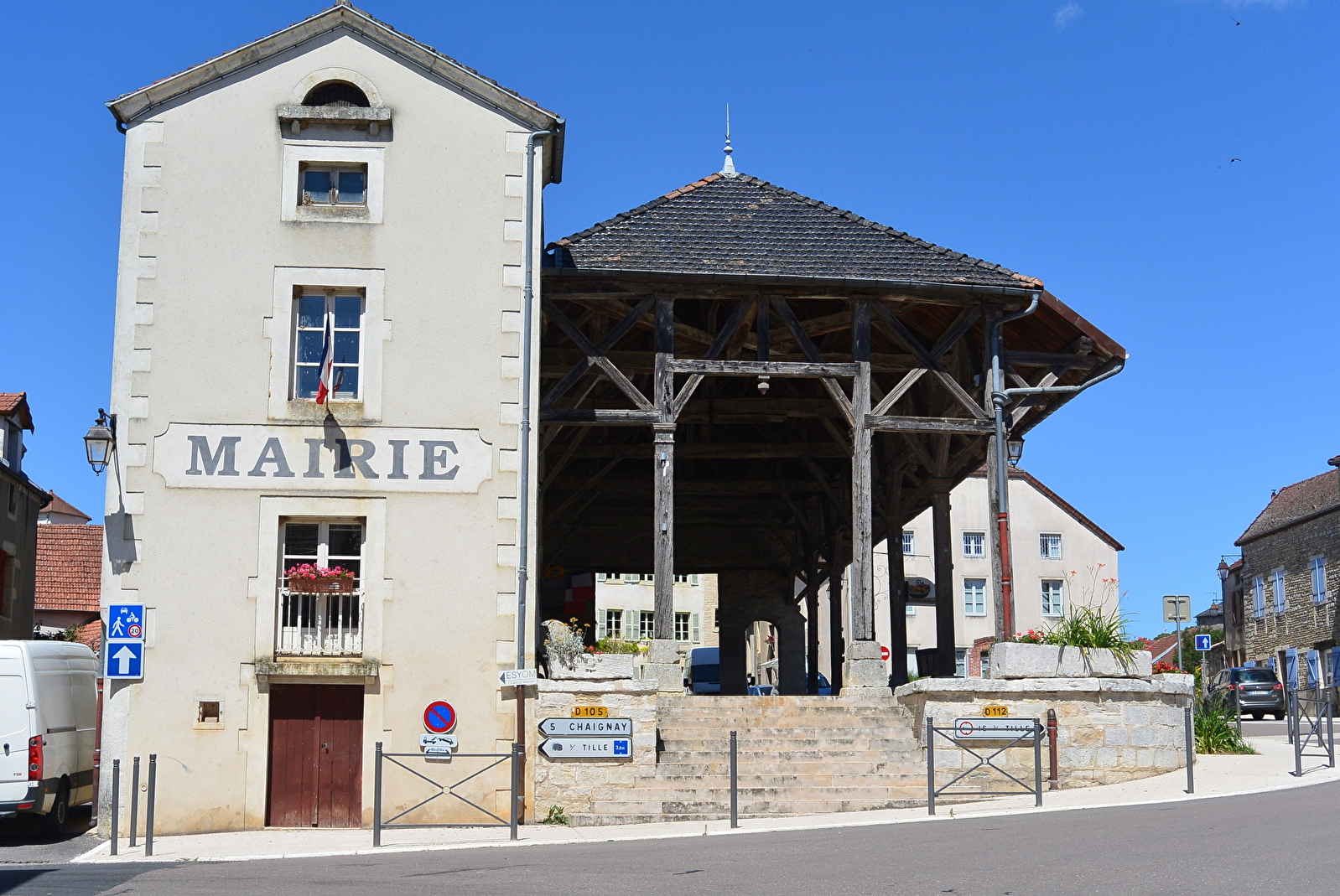 To encourage local life, the Sire of Neufchastel, Lord of Gemeaux, asked the King of France, Charles VIII, for permission to build market halls, which was granted in 1491. The building consisted of a central open nave, framed by two aisles. The north aisle disappeared in the 19th century, but the central part remains with its superb oak framework, which was strong enough to support a "lava" roof. The halls now house the town hall, which was once used as a hop drying shed. This remarkable building was almost destroyed many times. It was a place for fairs, but also for decisions and justice.