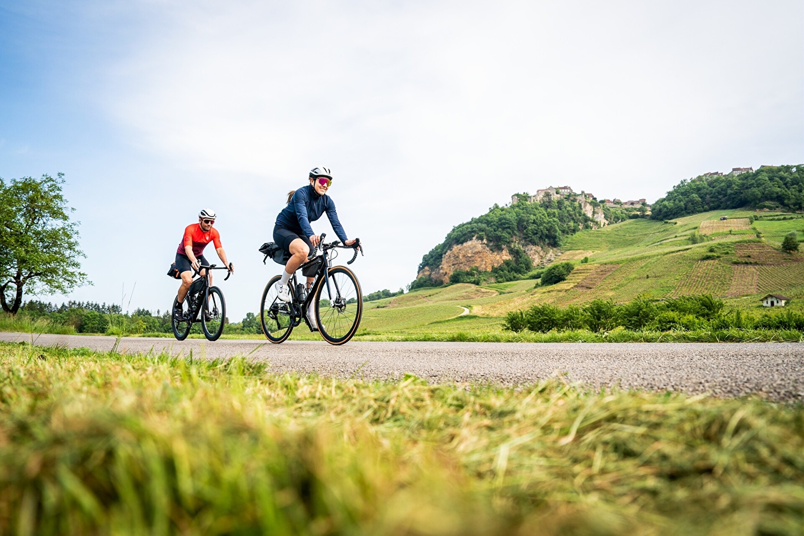 Cet itinéraire au pays du Vin Jaune offre ce que le Jura a de meilleur : trois reculées typiques, des villages parmi les plus beaux de France, le vignoble de Château-Chalon et l'abbaye de Baume les Messieurs. Une belle virée au pays du Vin Jaune et du Comté.Suivre le balisage vélo 23 bleu